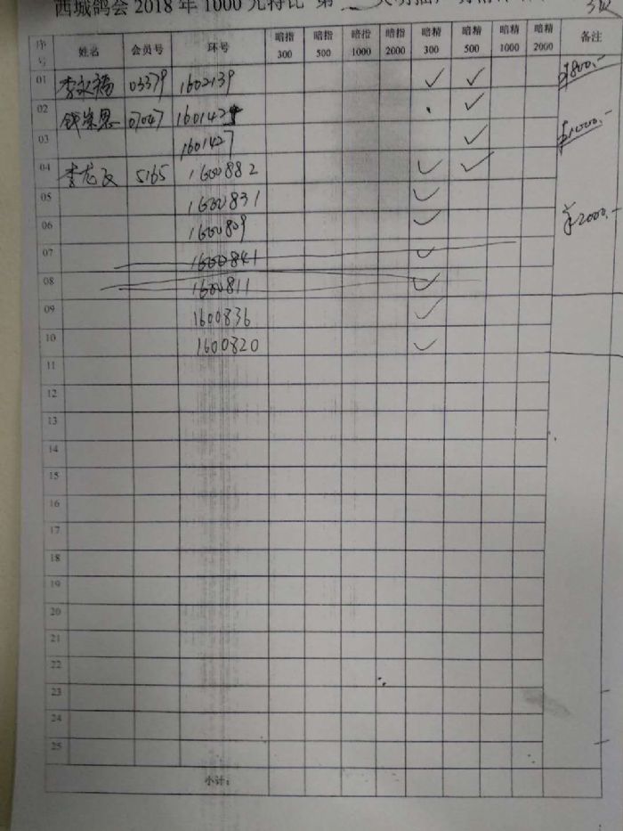 下面是实际单据照片,如有遗漏错误,请在赛鸽归巢前,及时联系鸽会纠正,8352-9889