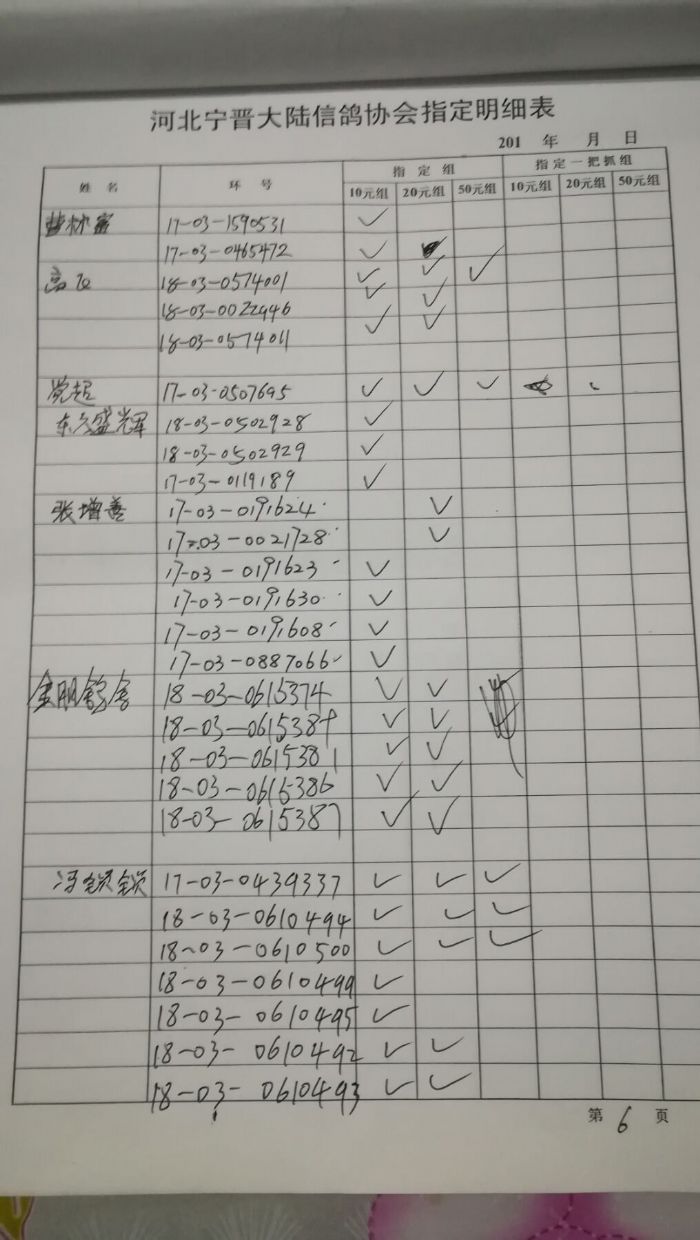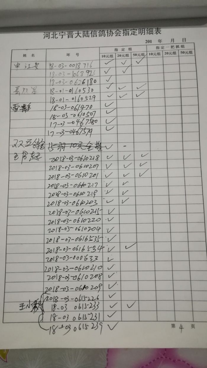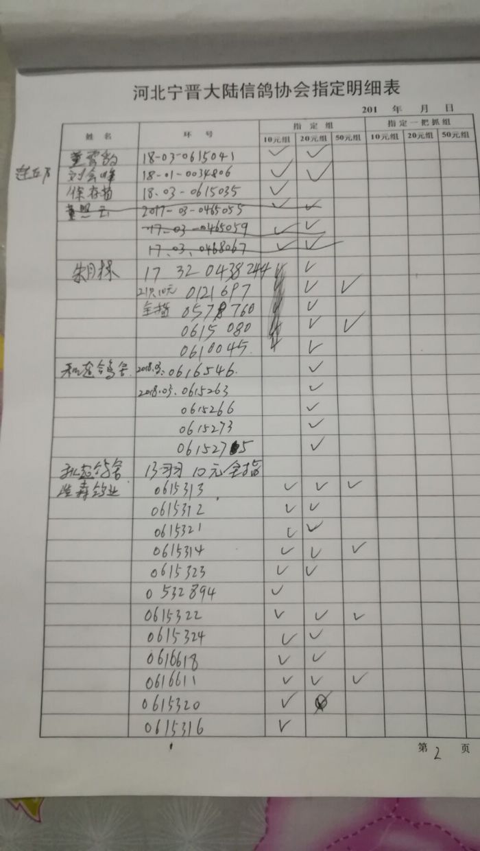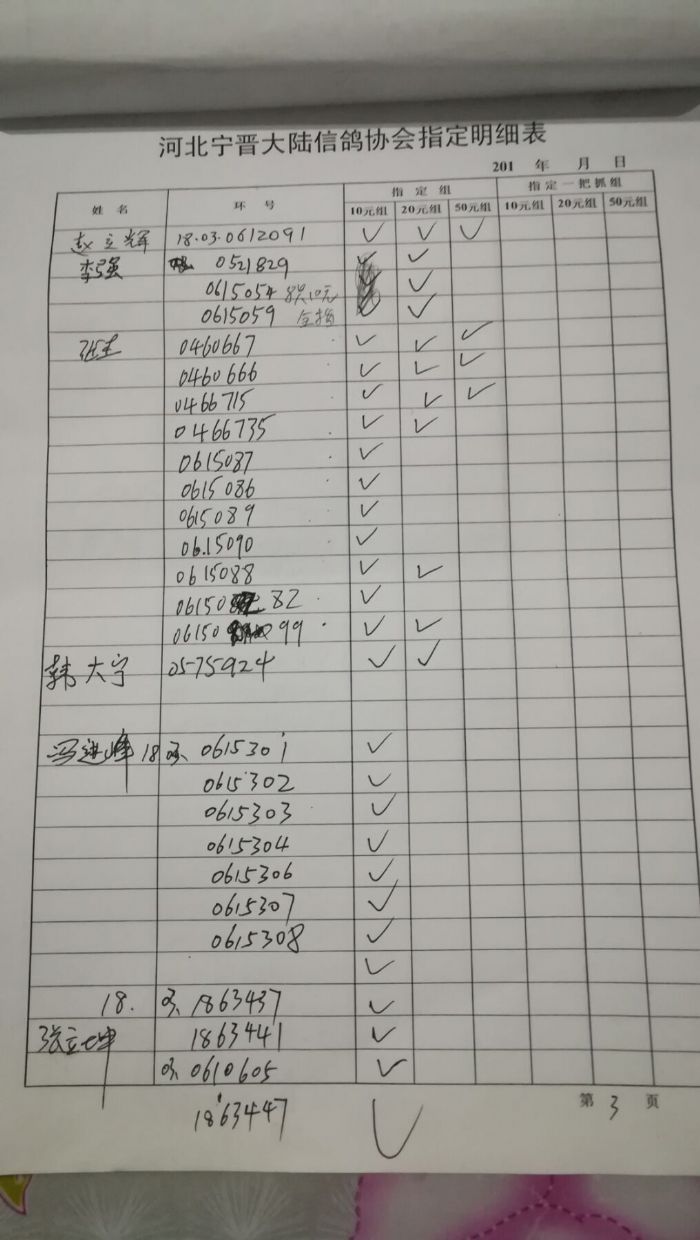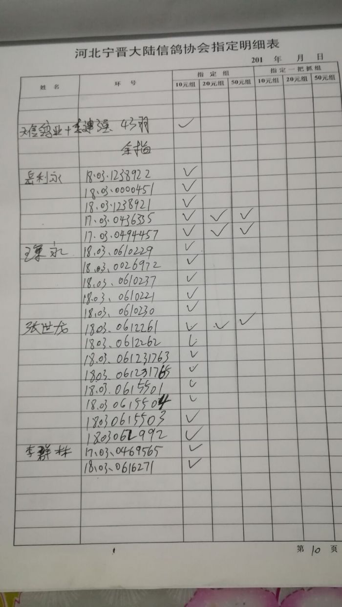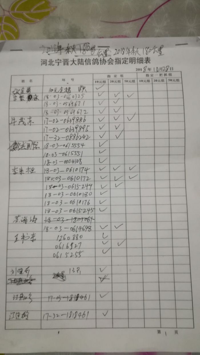 宁晋县大陆信鸽协会2018年秋季180公里指定清单