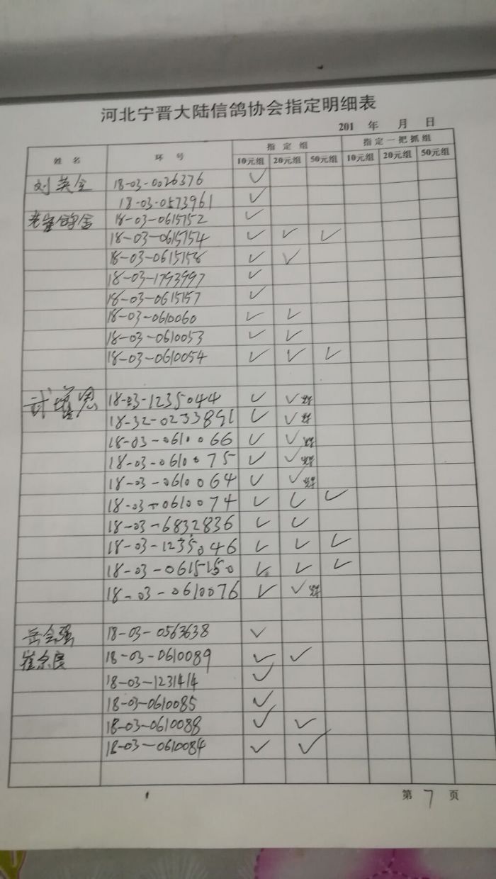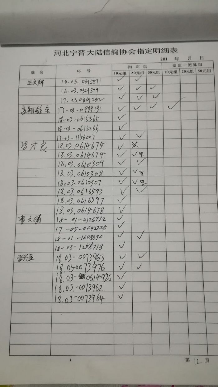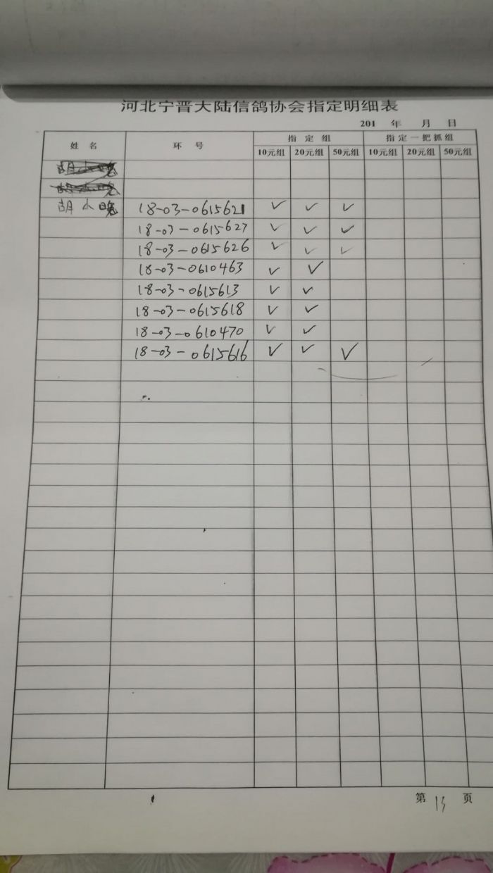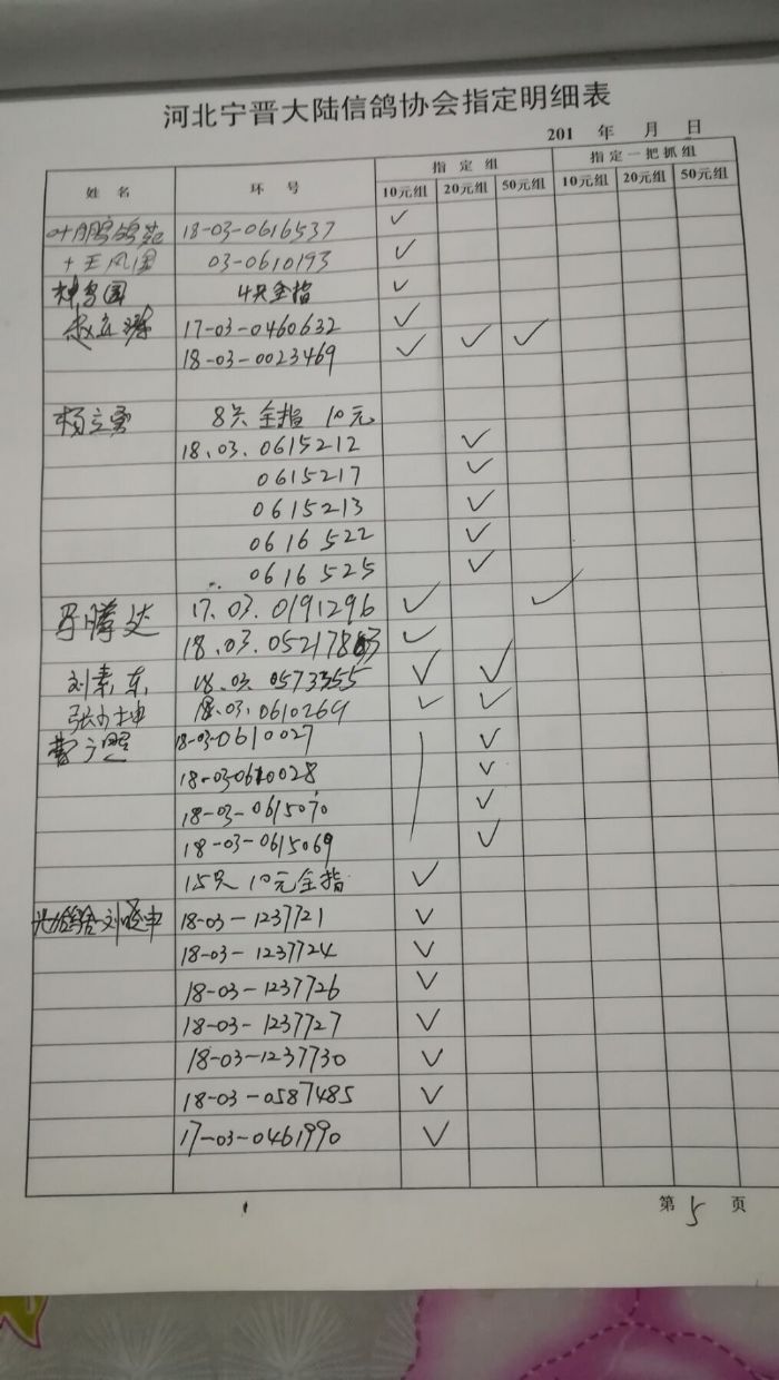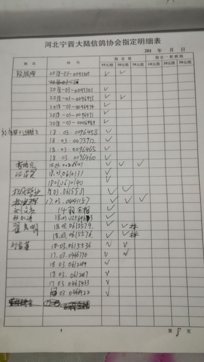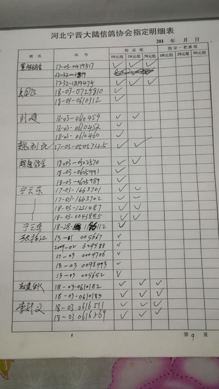 宁晋县大陆信鸽协会2018年秋季180公里指定清单