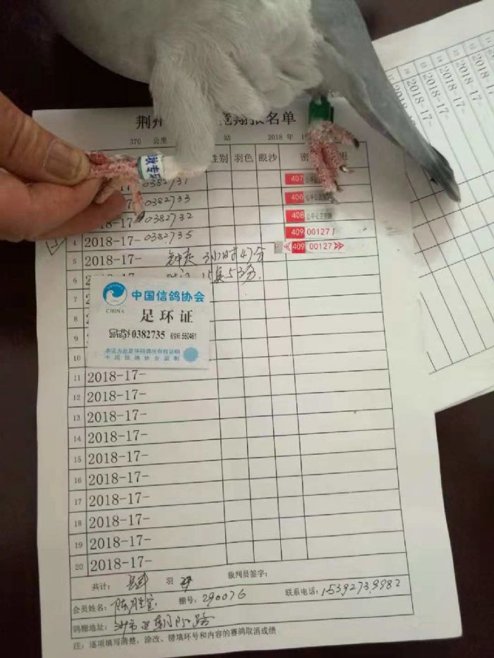 2017年11月22日全国千公里联赛廊坊站比赛集鸽清单