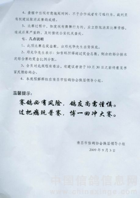 南昌市信鸽协会2024年秋季竟翔规程1