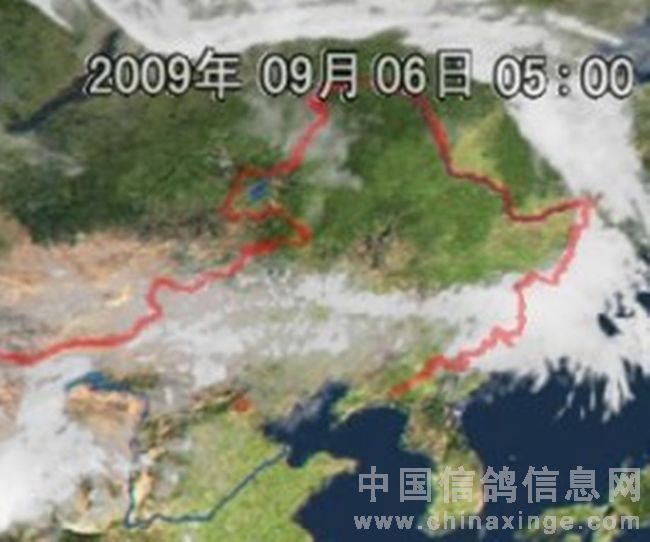 沈阳市信鸽协会180公里比赛于2009年9月6日早6时10分,在吉林省双辽开笼。司放地晴天,北风3级。沿途康平多云、法库多云、沈阳多云。北风小于3级。