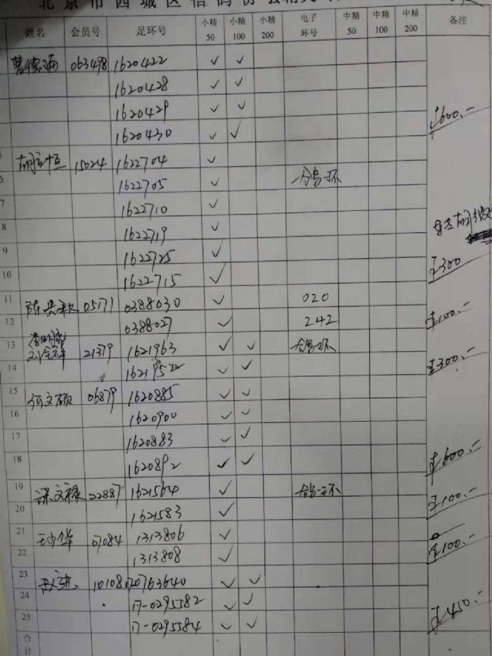 以下是精英赛单据照片,请认真核对,如有错误遗漏,请在赛鸽归巢前及时联系鸽会纠正,