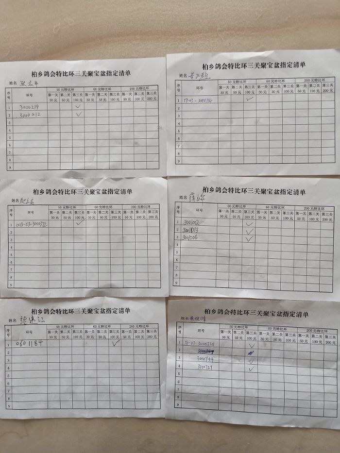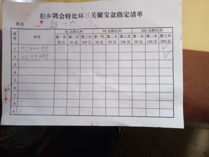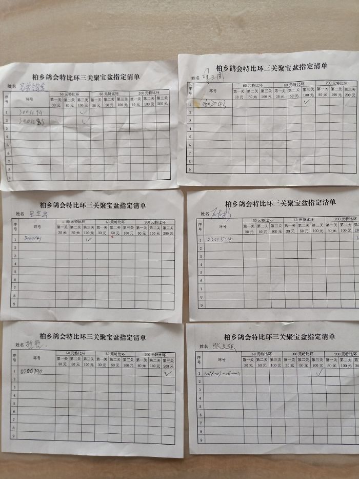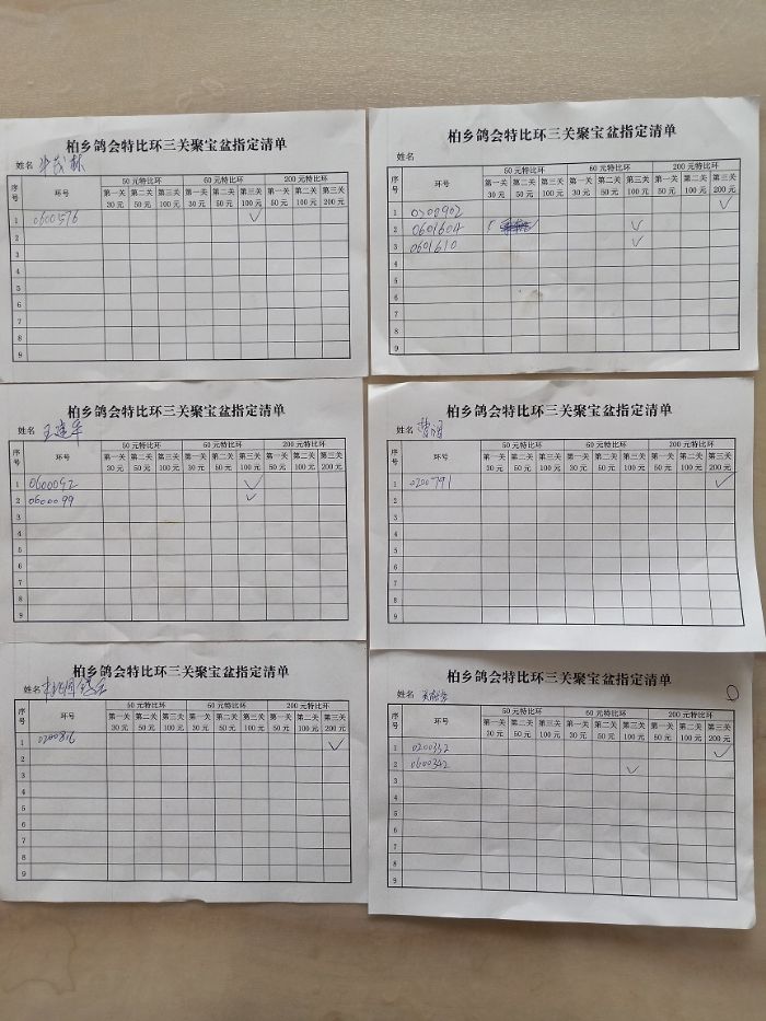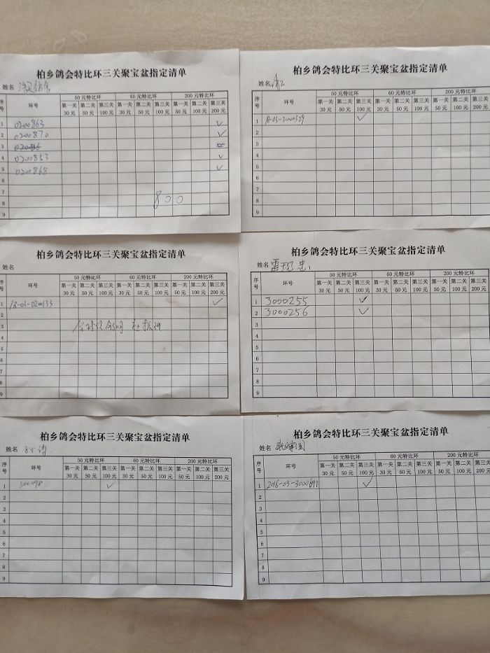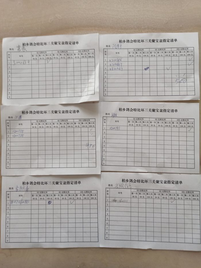 柏乡信鸽协会聚宝盆第三次缴费清单
