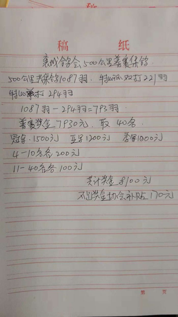 2018年秋季500公里岳阳比赛站普赛奖金分配