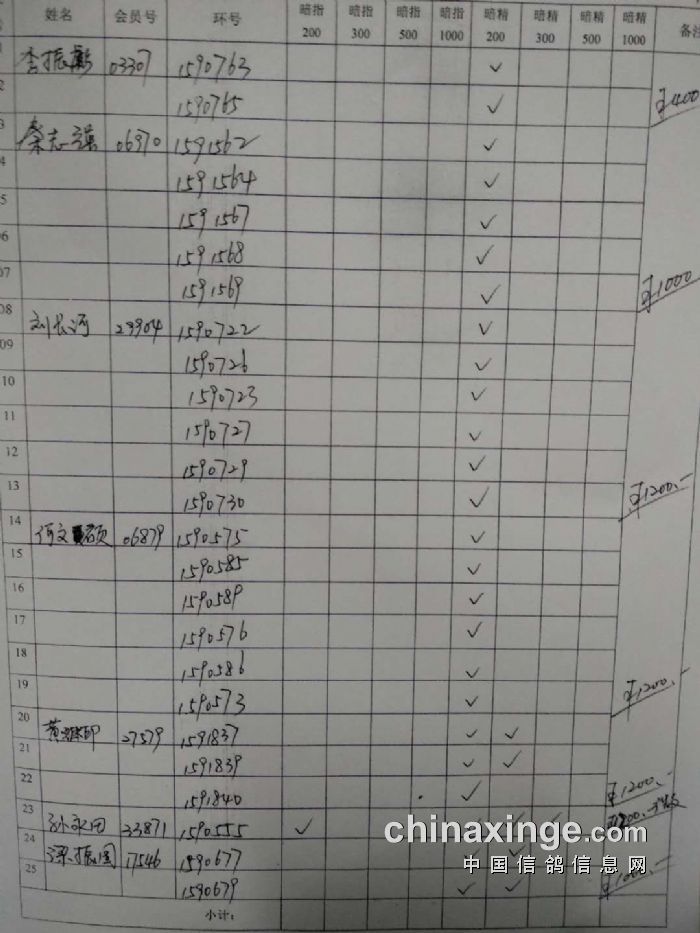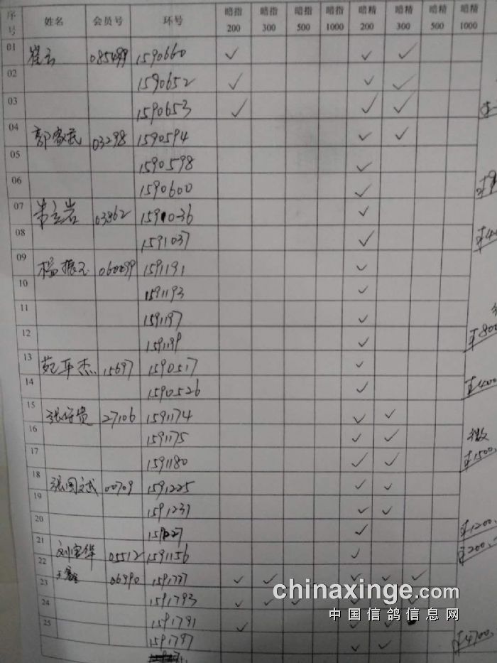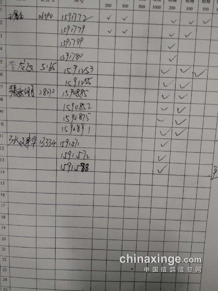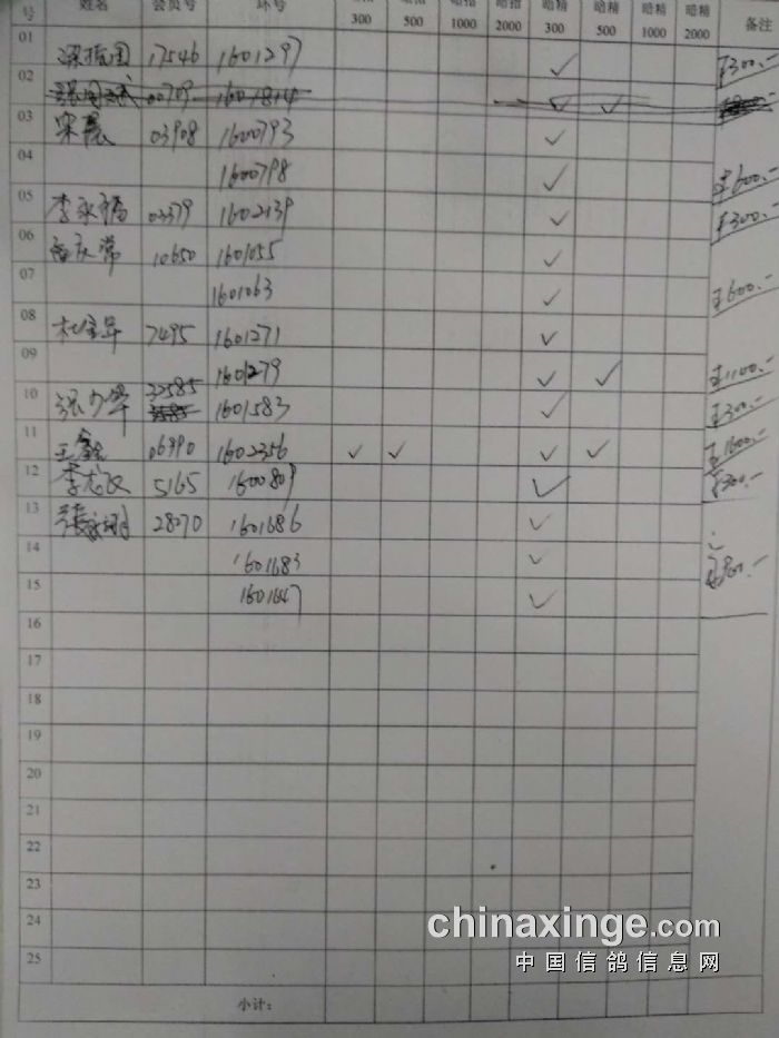 下面是实际单据照片,如有遗漏错误,请在赛鸽归巢前,及时联系鸽会纠正,8352-9889 15600670987