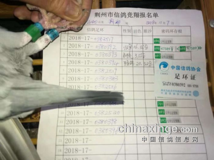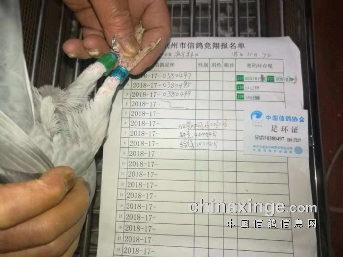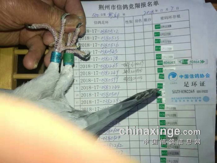 指定鸽50/100/200 第二名 291163 熊军 18-17-0380392