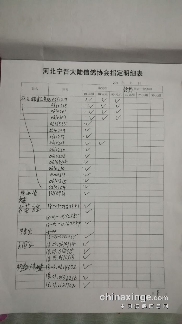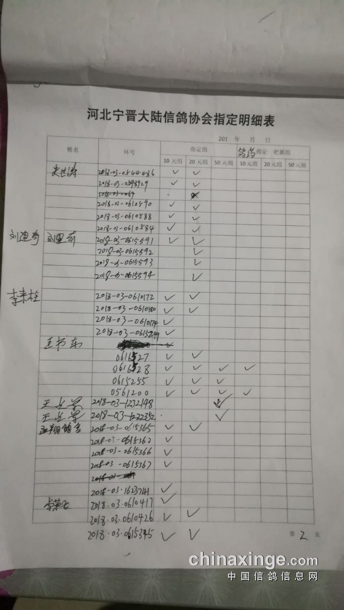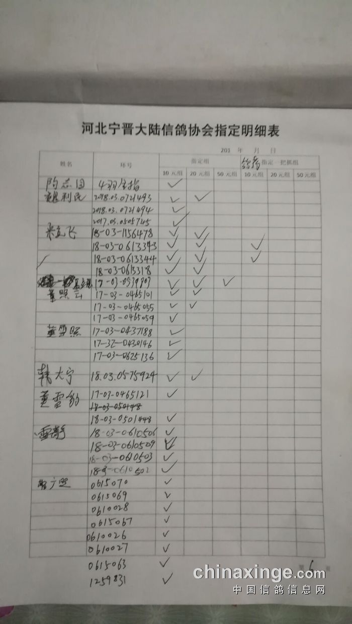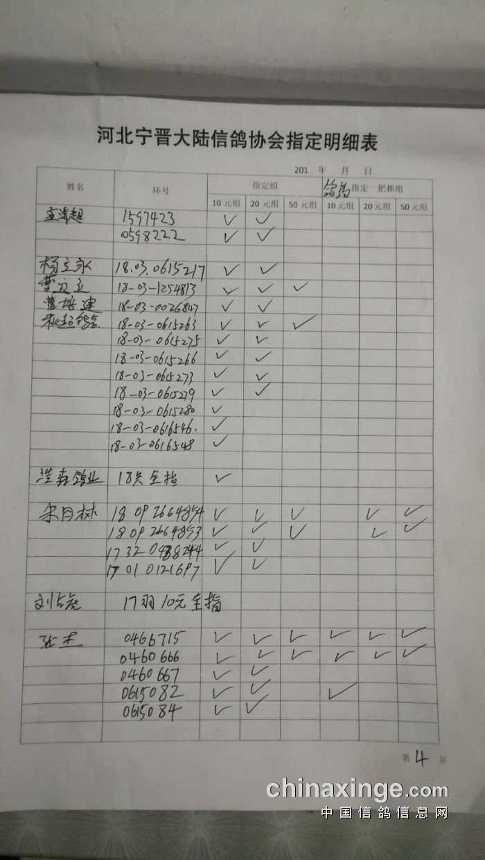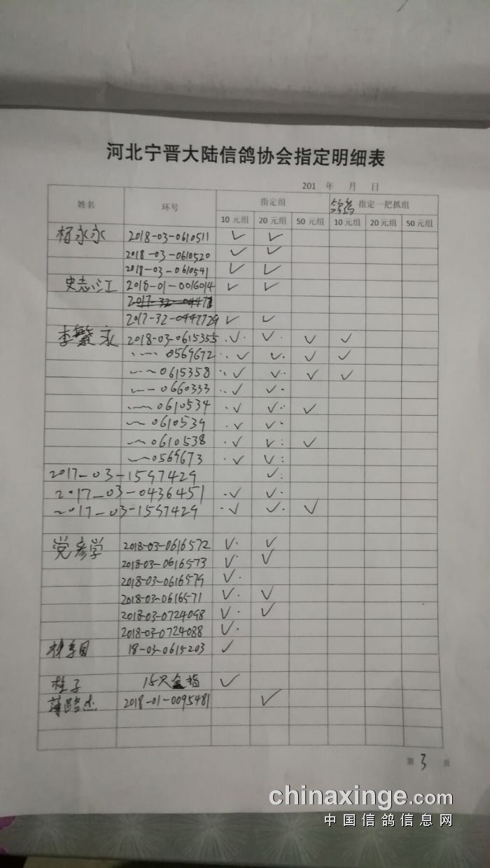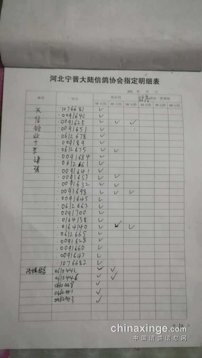 宁晋县大陆信鸽协会2018年秋季350公里指定清单