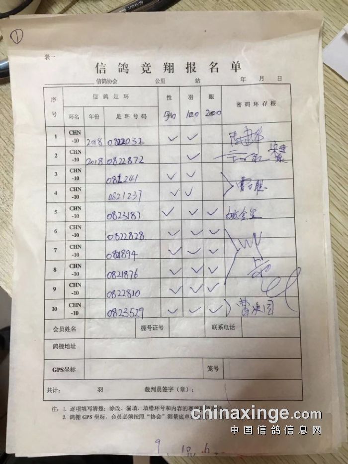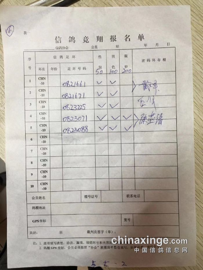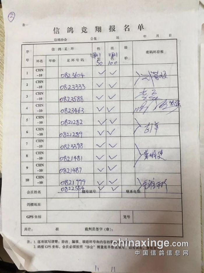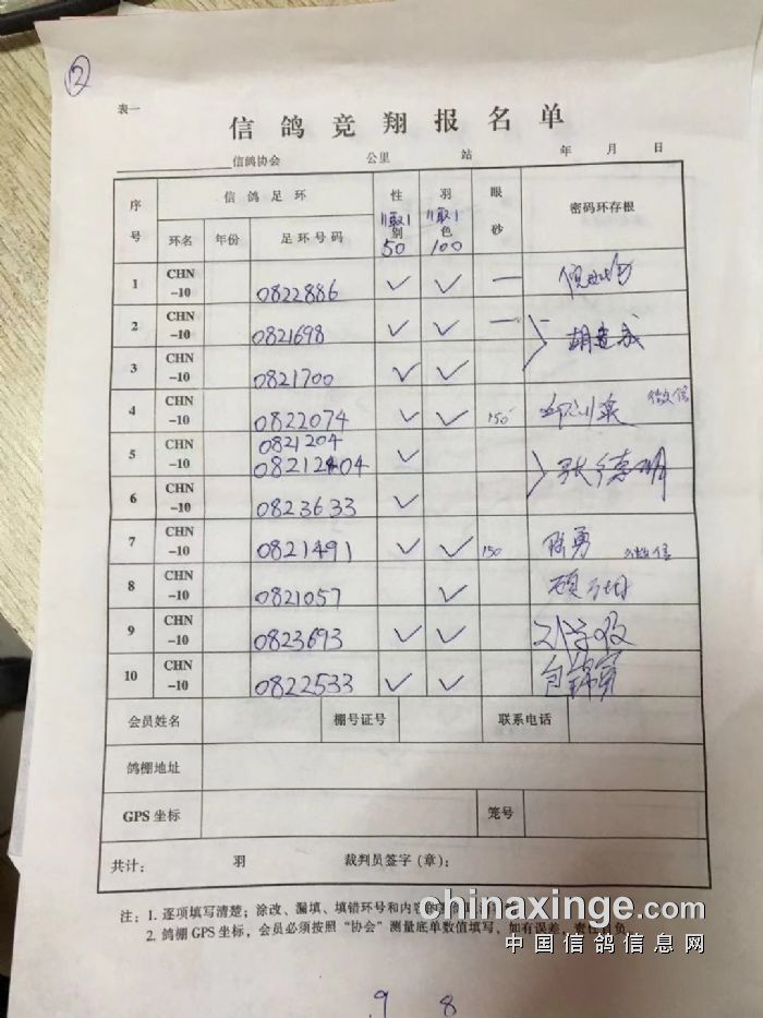 2018年南通第三届“鸽王杯”特比环第二关指定鸽明细