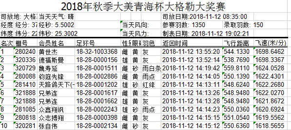 西宁市信鸽协会秋季特比环双关综合预览版(大环)