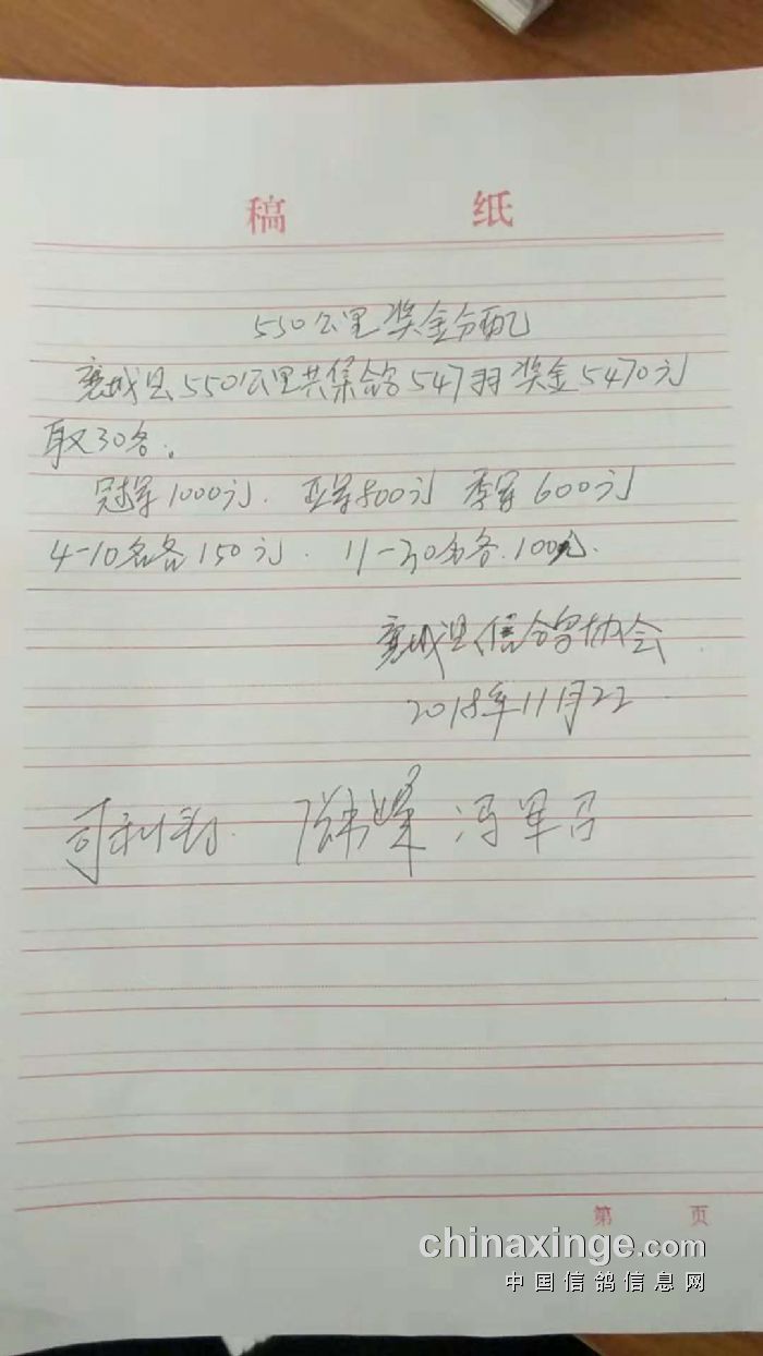 2018年秋550公里奖金分配