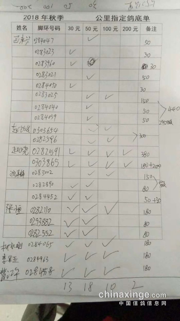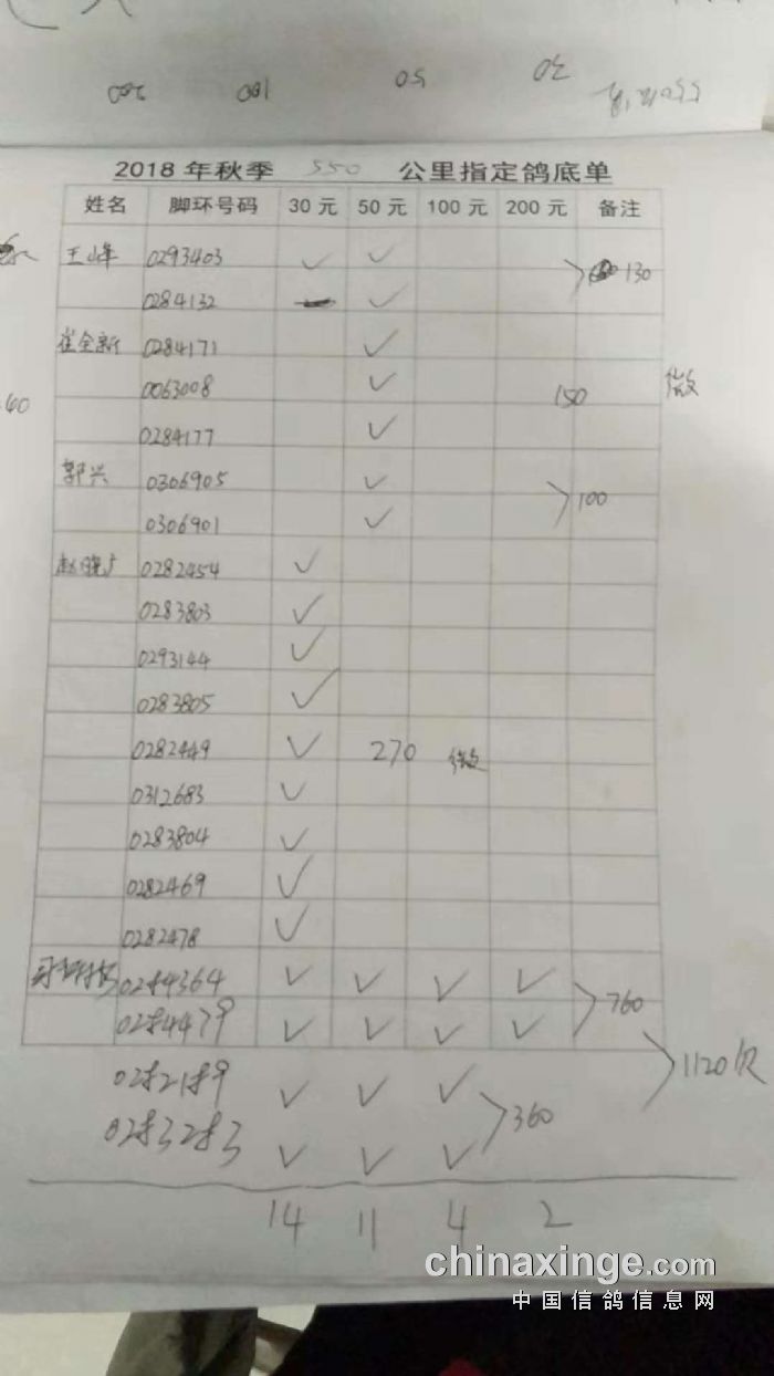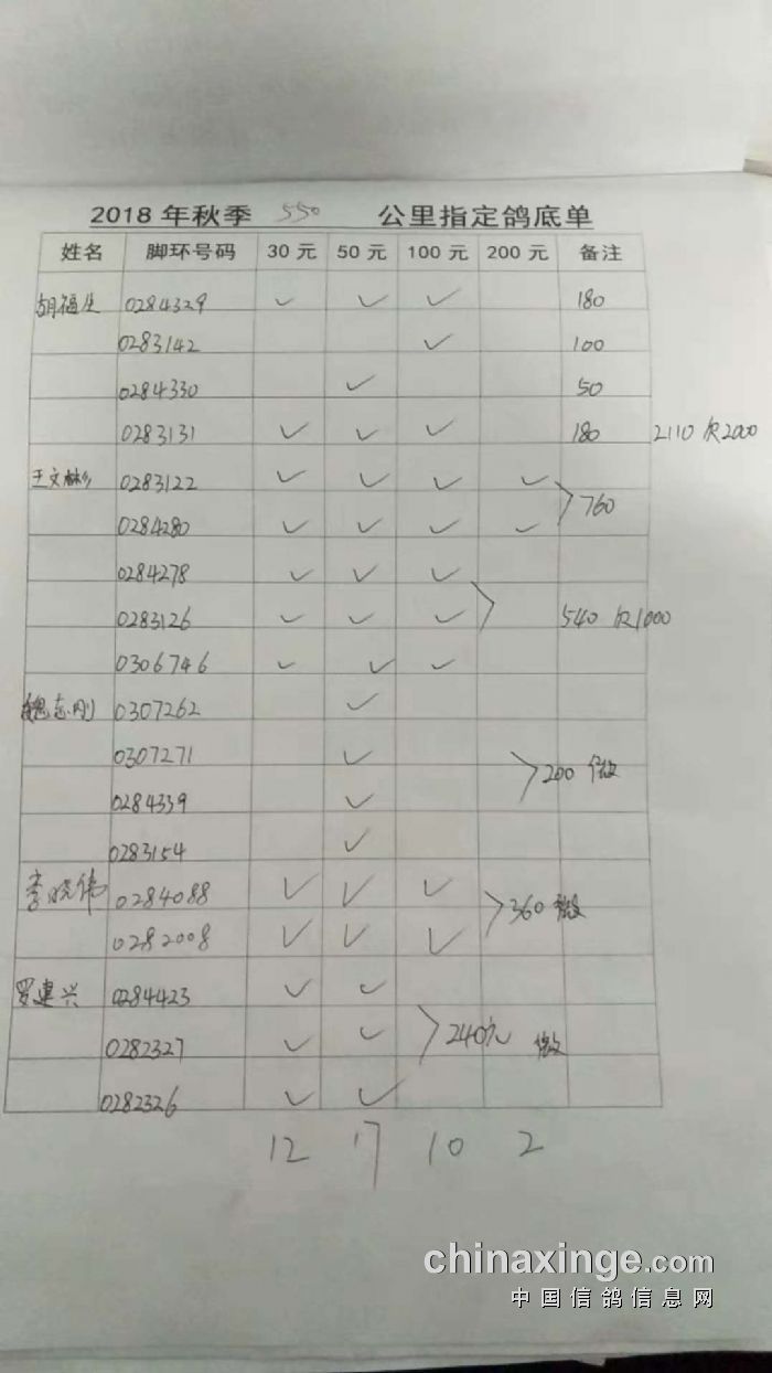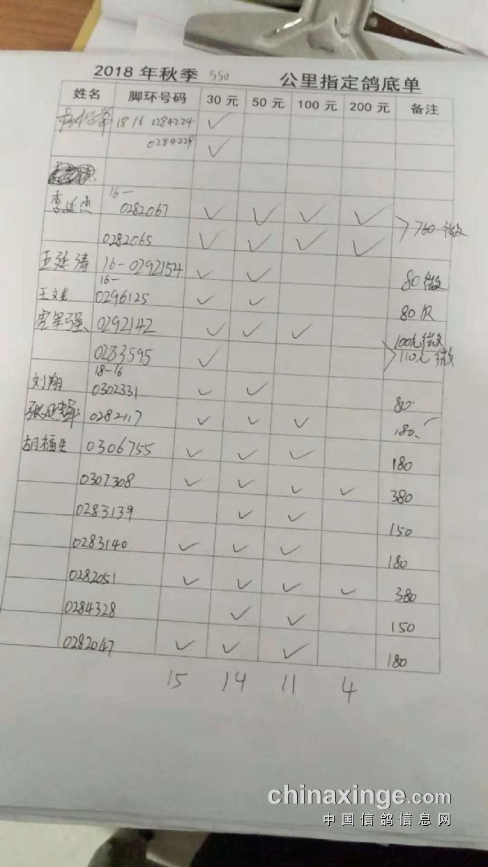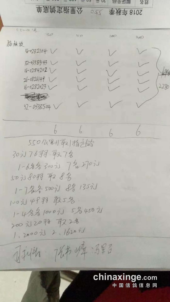550公里岳阳站比赛指定鸽底单及奖金分配