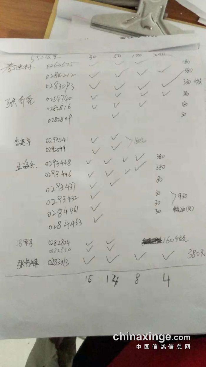 襄城信鸽协会25年秋季第三关510公里湖南南县比赛集鸽清单