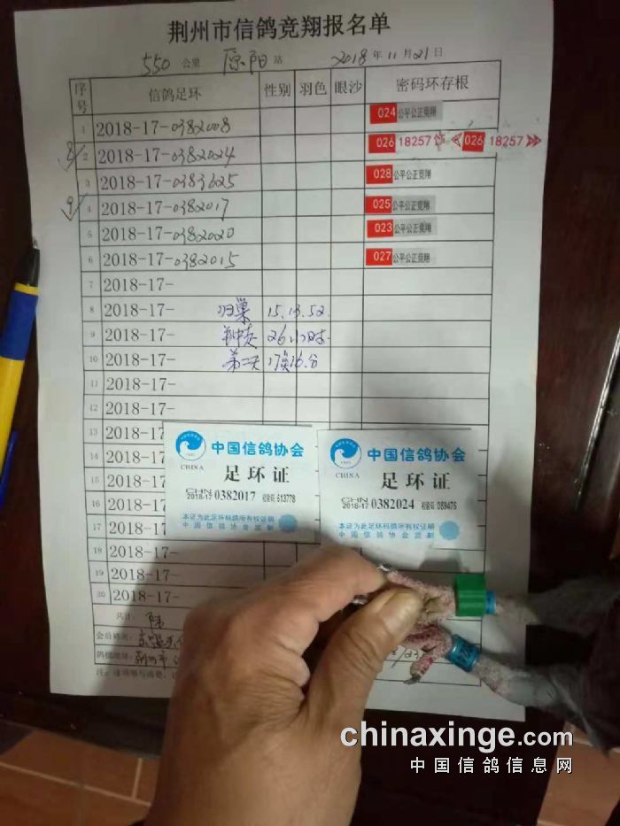 2017年11月26日480公里新郑站年度王中王比赛集鸽清单