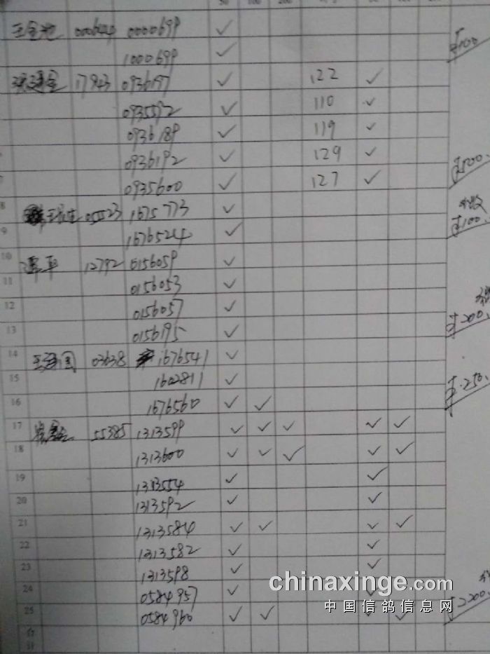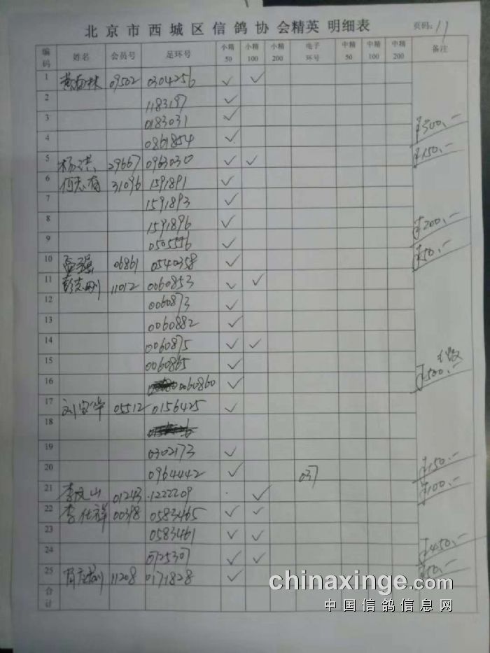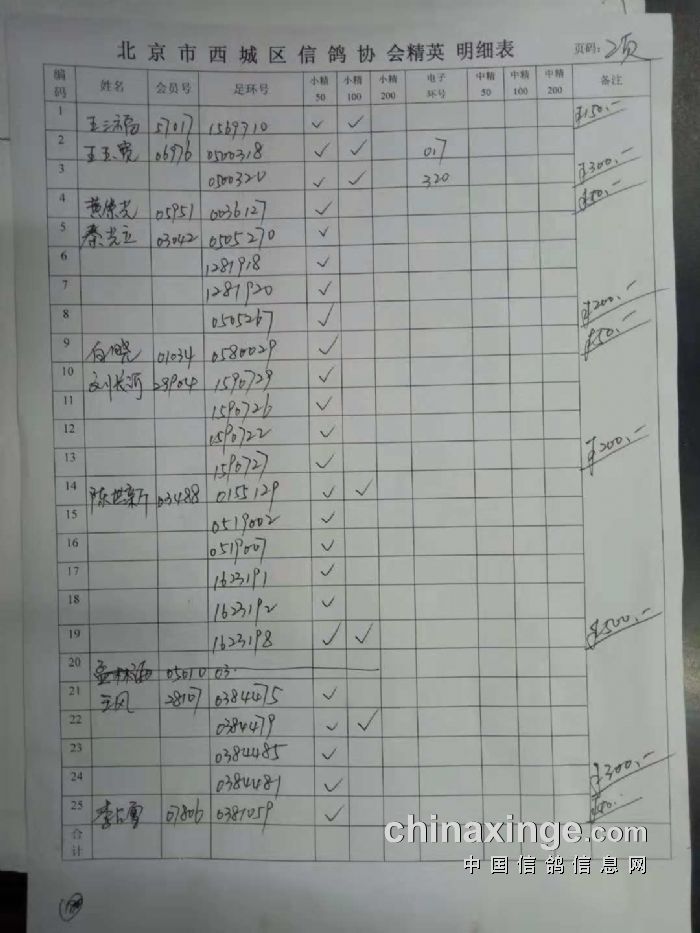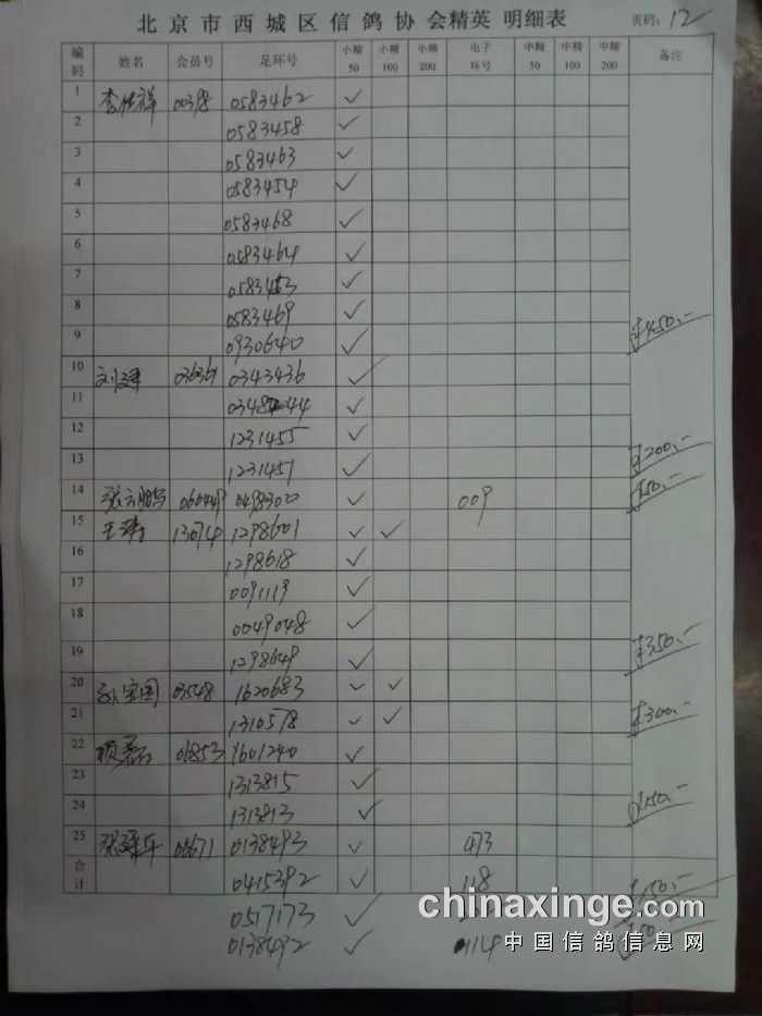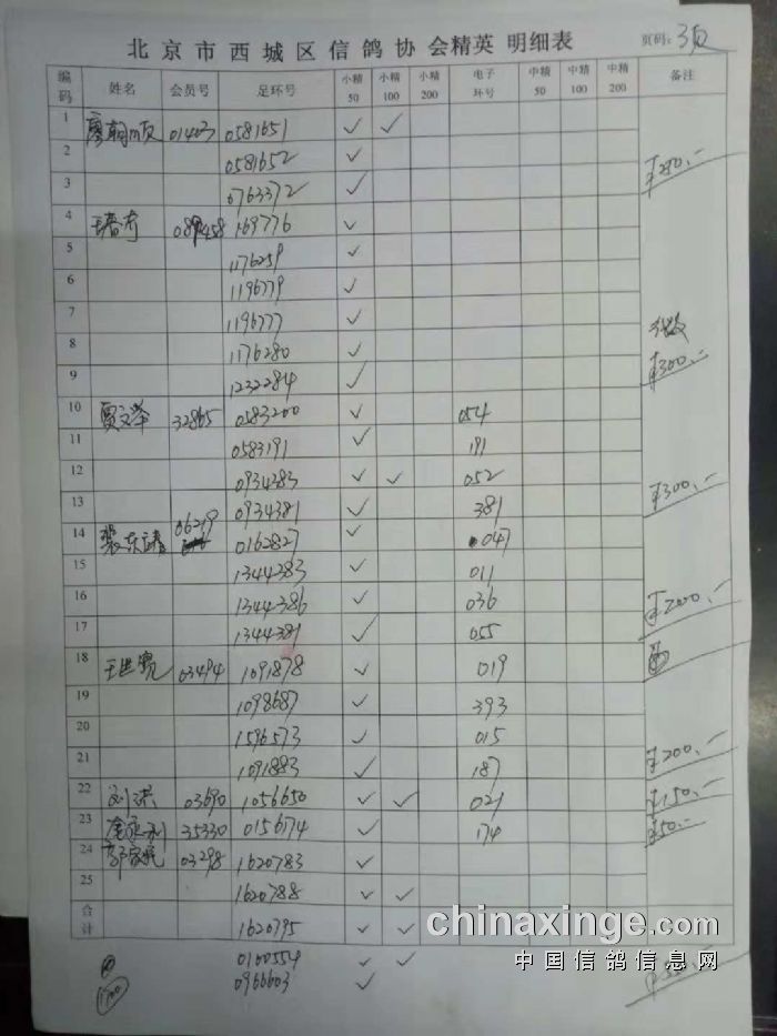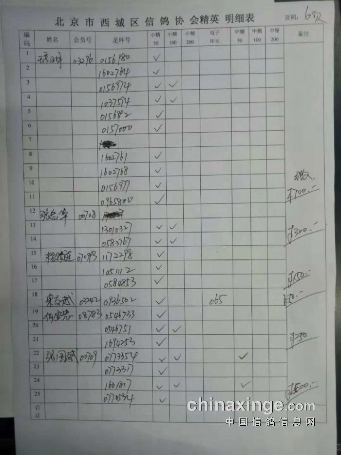 中精英50元 67羽 中精英100元 25 羽 中精英 200元 3羽