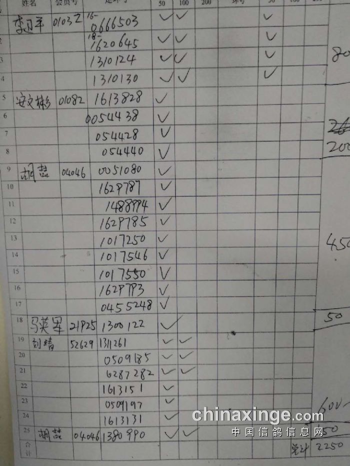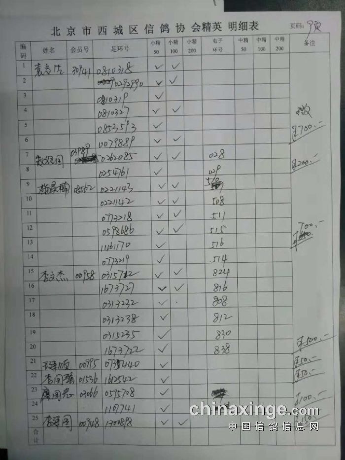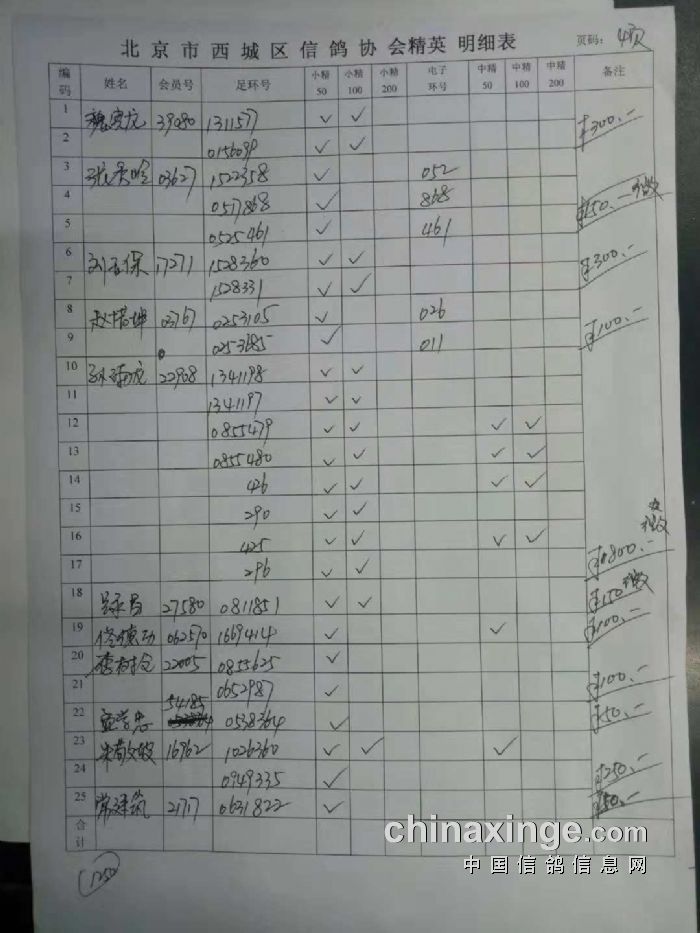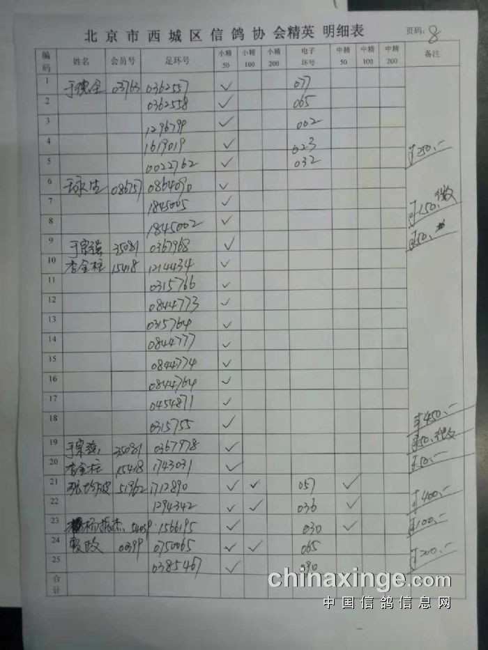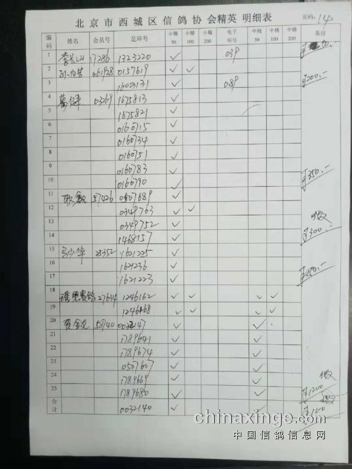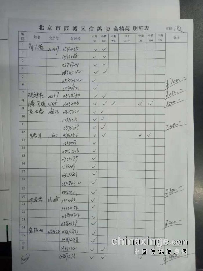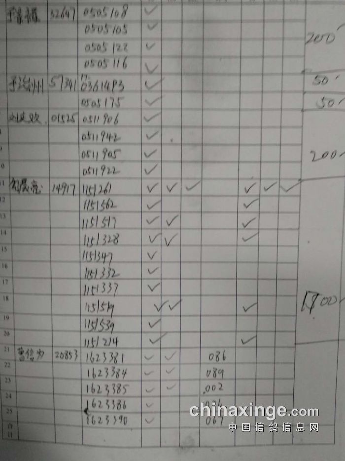 中精英50元 67羽 中精英100元 25 羽 中精英 200元 3羽