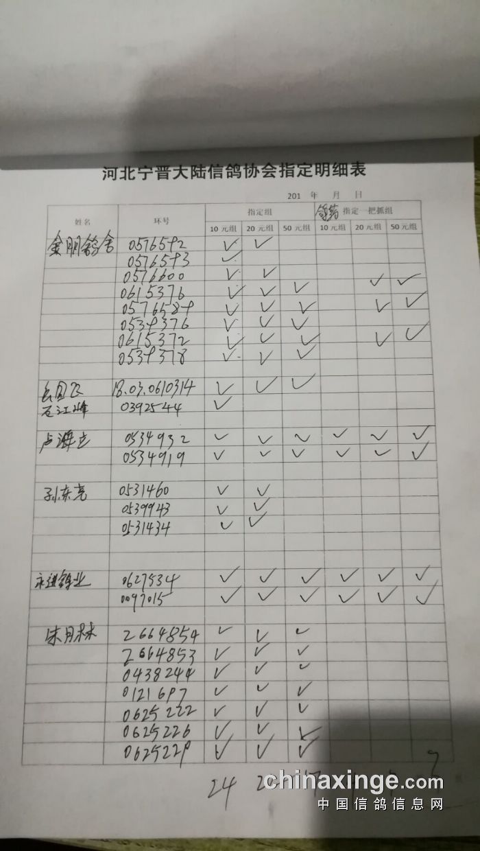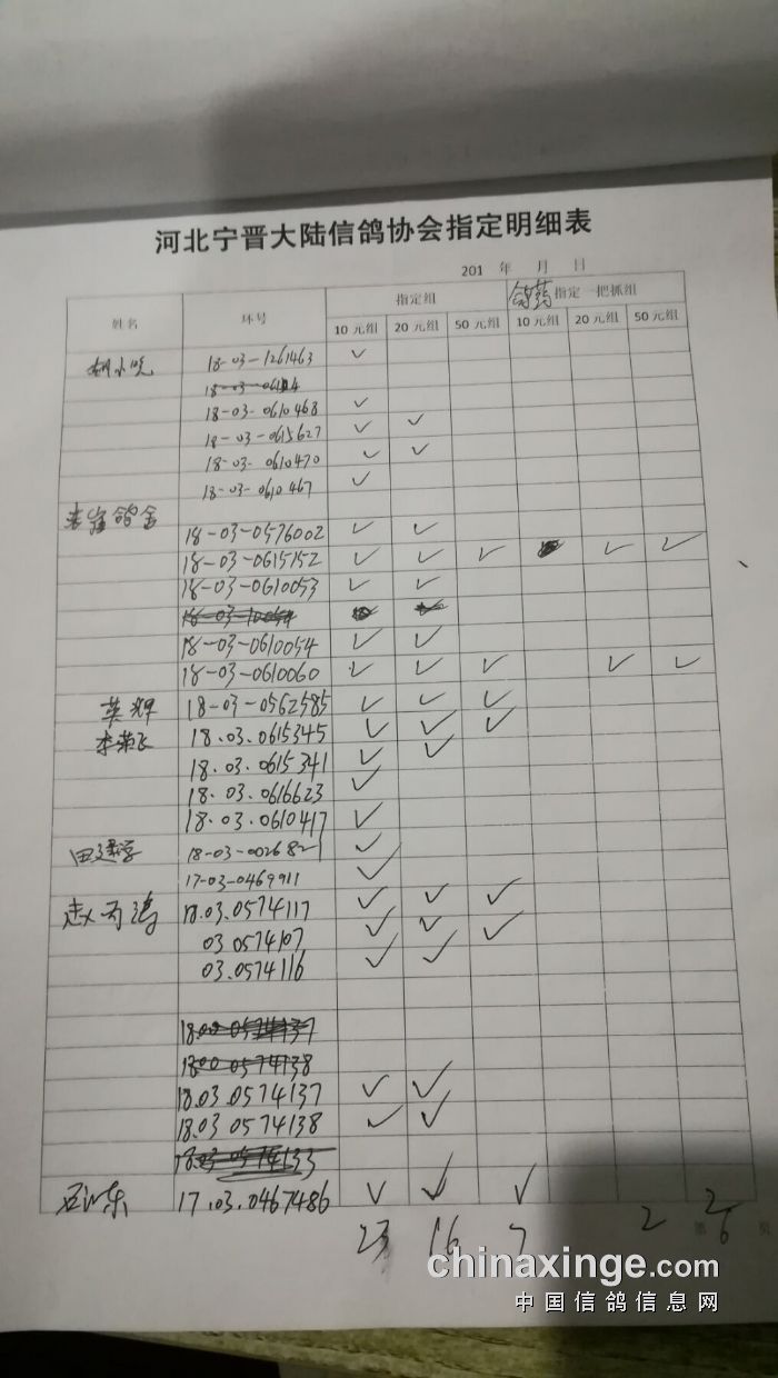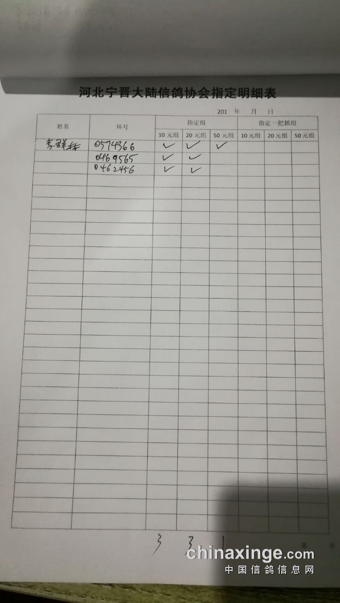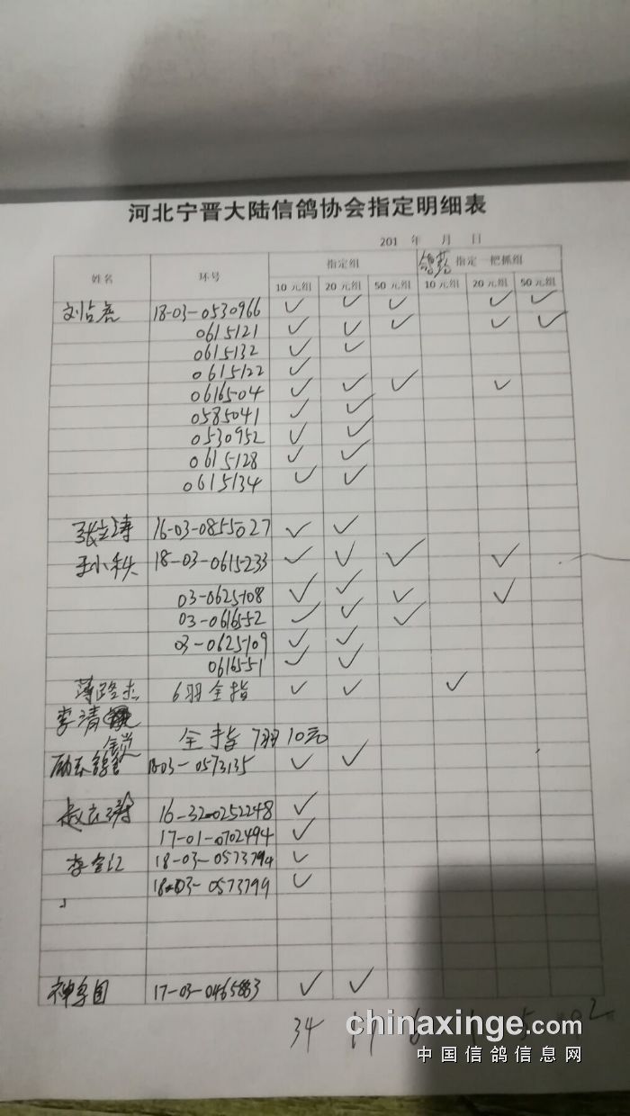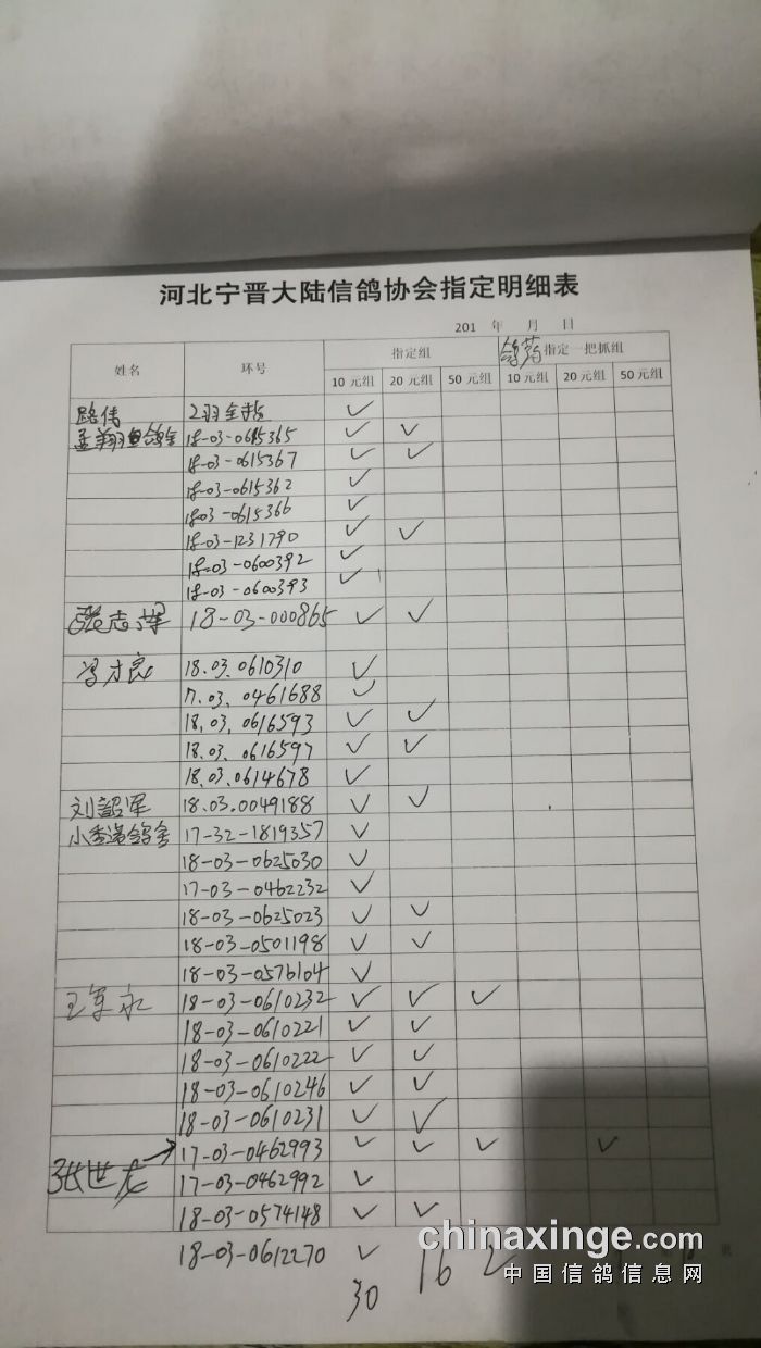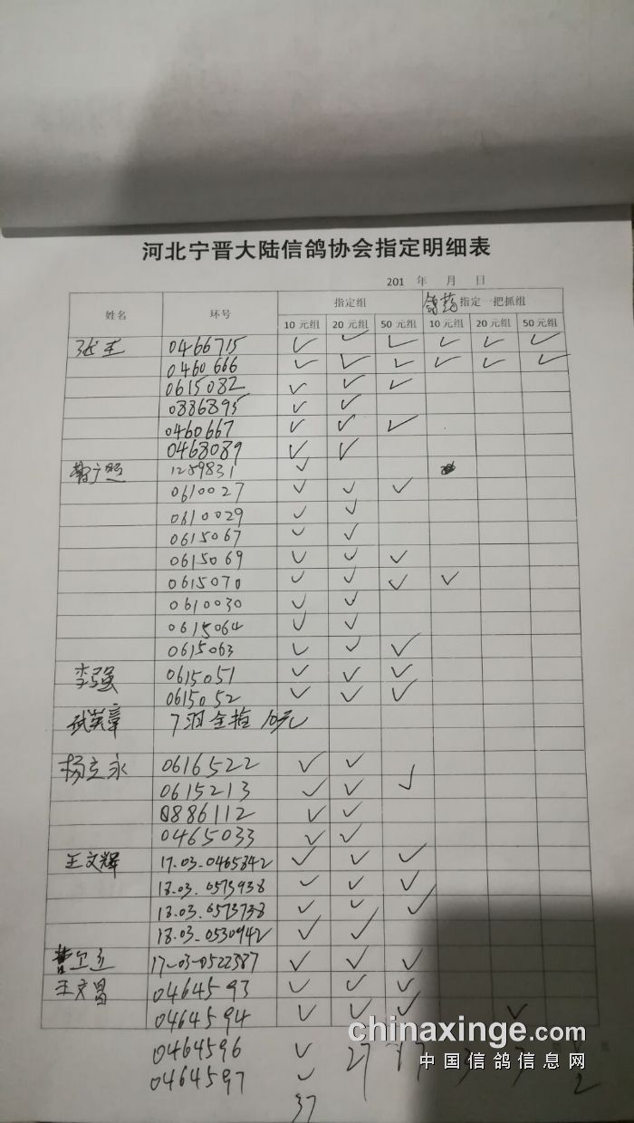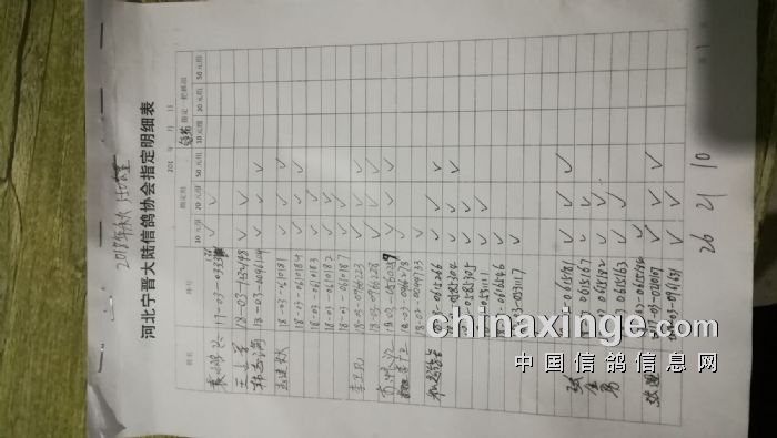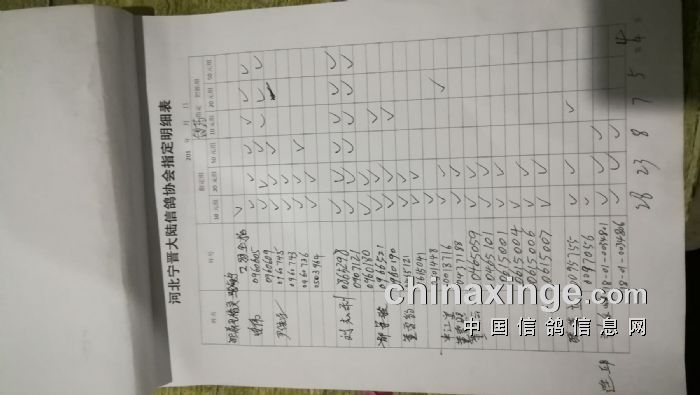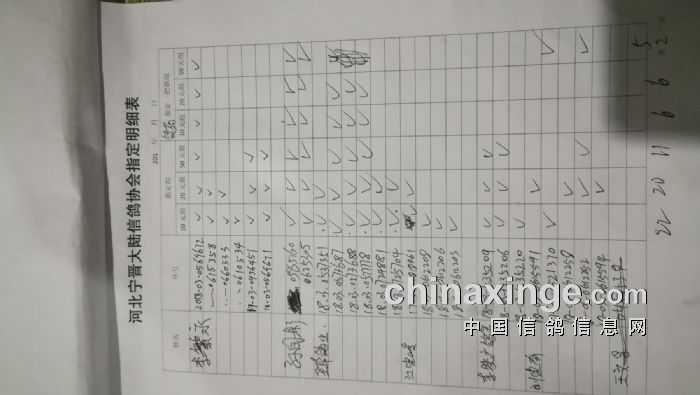 宁晋县大陆信鸽协会2018年秋季550公里指定清单