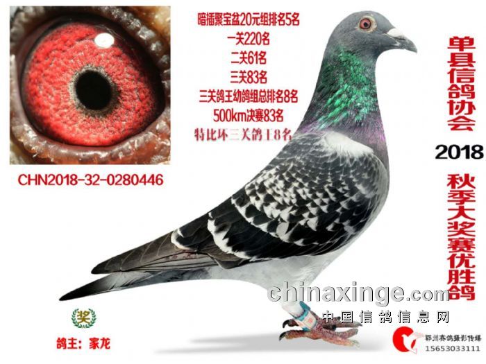 9名 金洋鸽舍-家龙 2018-32-0280446 16+18+81