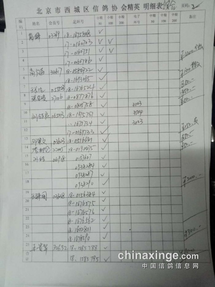 西城第八届“跨双年度最佳鸽舍、最佳鸽手”秋季积分光荣榜排名