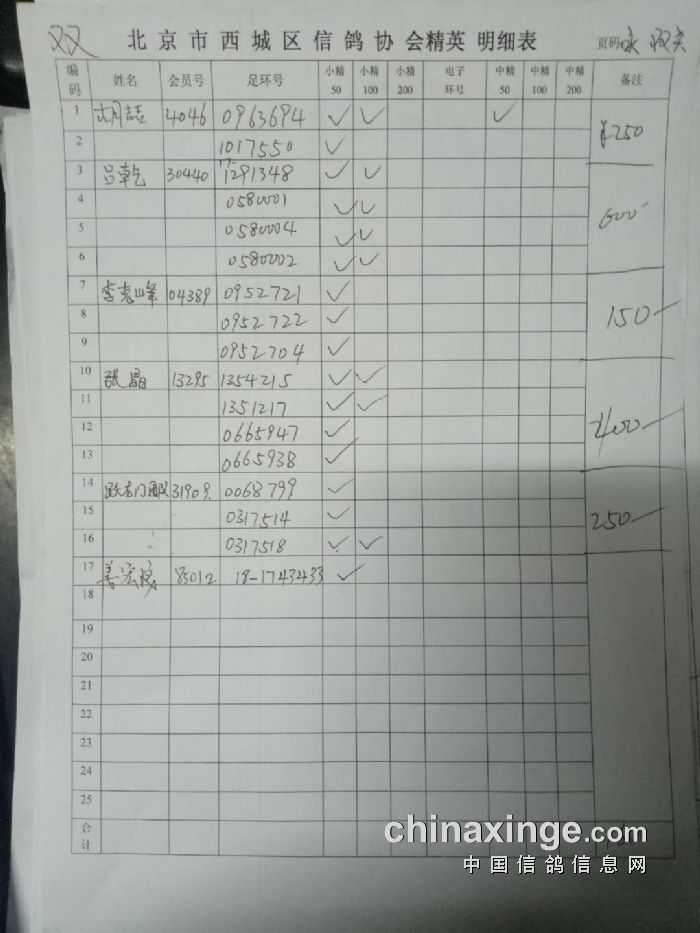 西城鸽会25年11月8日520公里比赛暨双关拍卖赛第一关北区初中季赛临时成绩