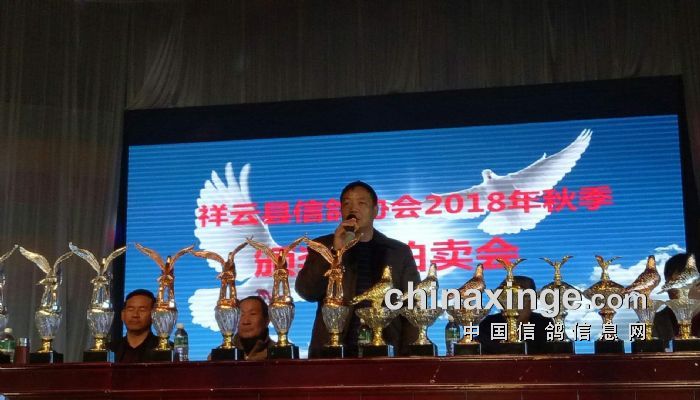 一元复始,万象更新。2019年1月6日祥云县信鸽协会在景色宜人的锦兴大酒店召开了2018年秋季颁奖暨拍卖会。鸽会党支部书记、主席李云作了热情洋溢的讲话,欢迎参会的鸽友,对获奖会员作衷心的祝贺,对未获奖会员亲切的慰问,树立信心,争取好成绩。祥云县信鸽协会2018年秋赛起站一万多羽,司放“魔鬼赛线”——东线,远至安龙,经过七站训赛,共103羽赛鸽进行了拍卖,会员赵学新四关鸽王冠军2.1万元成交,来自大理州内外共500余人参加了此次盛会。大理州信鸽协会秘书长和昆出席了拍卖会并主持拍卖。