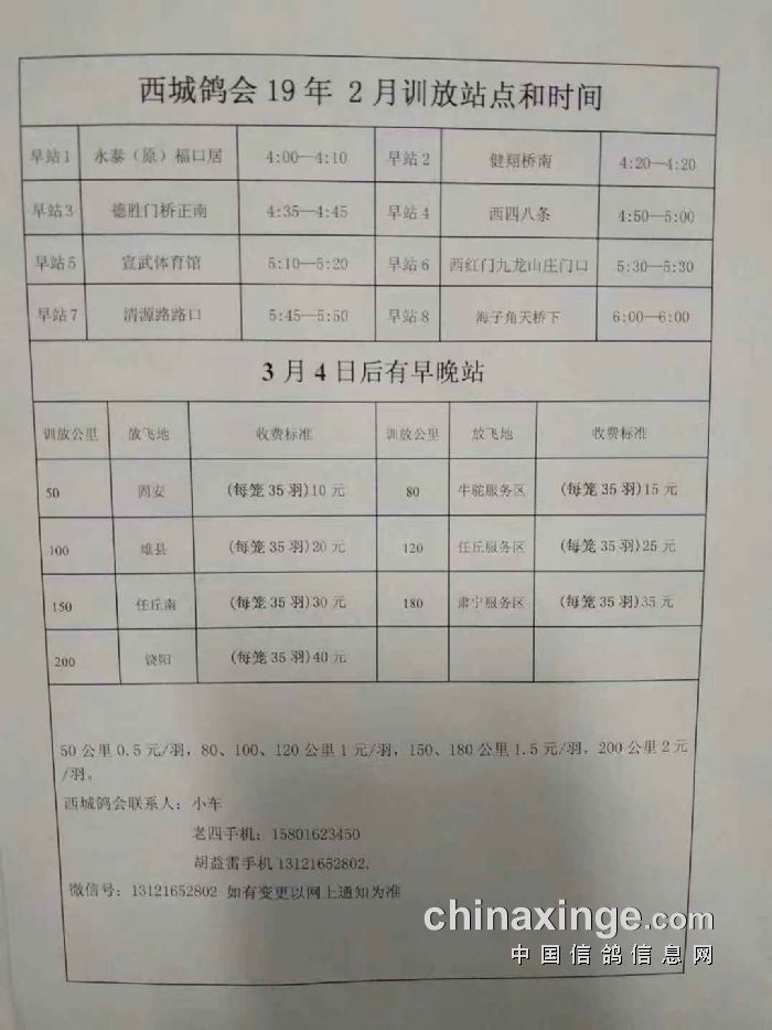 西城鸽会明早训80--100公里,请互相转告。谢谢!!