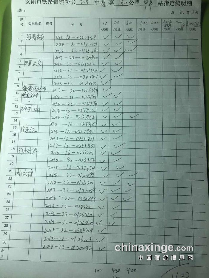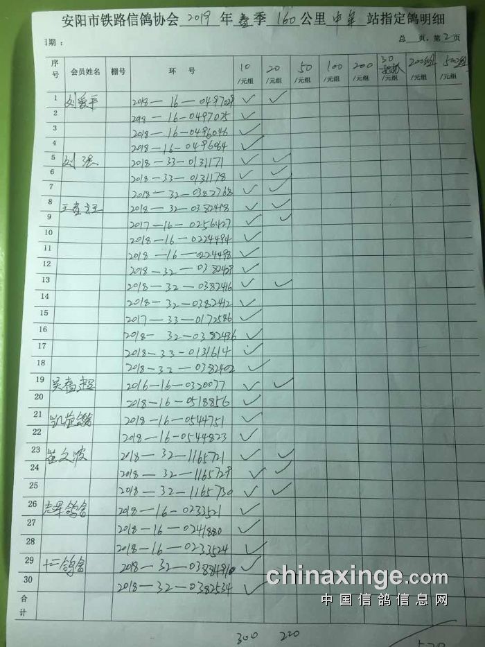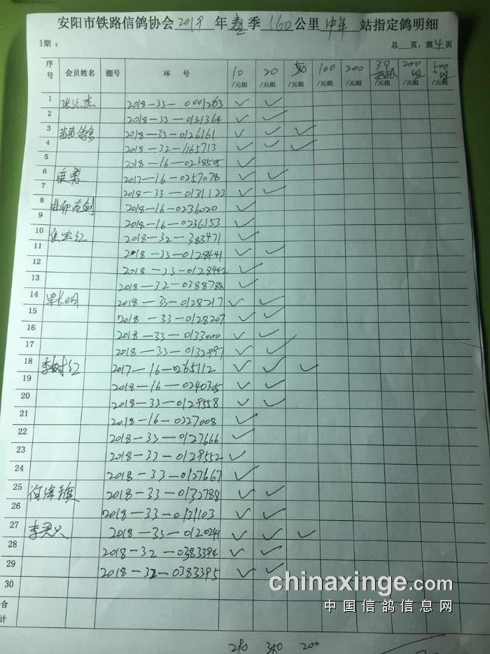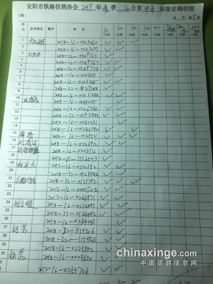 2019年春第一次160公里中牟站速度赛指定明细(1)