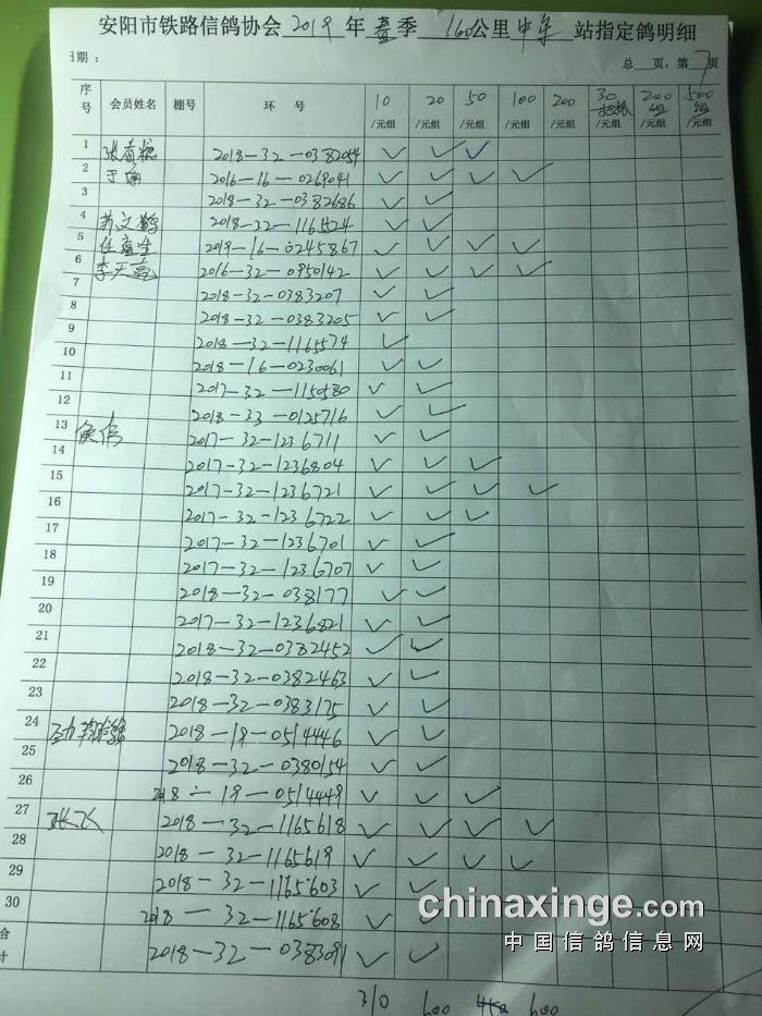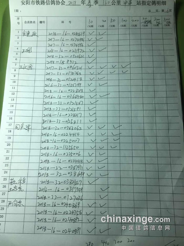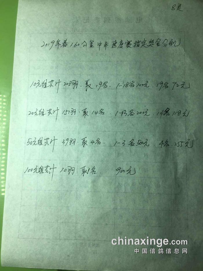 2019年春第一次160公里中牟站速度赛指定明细(2)