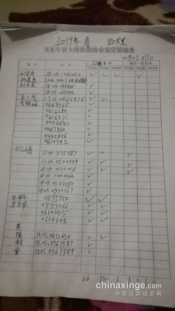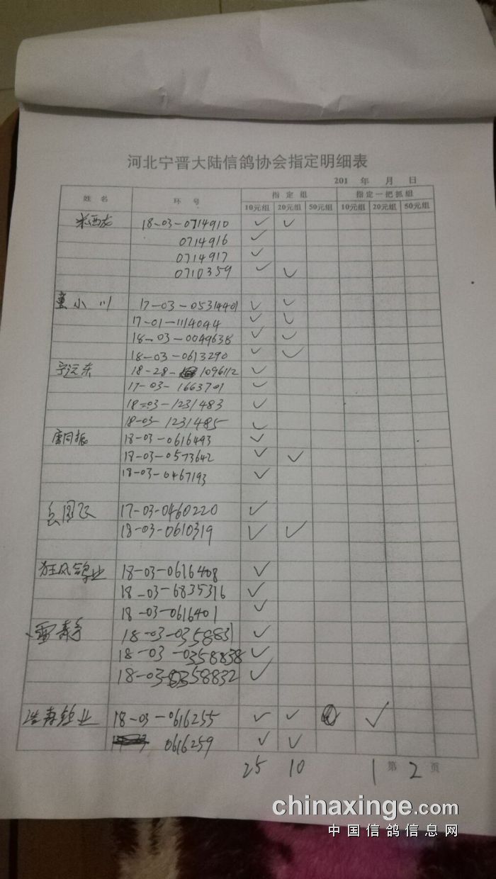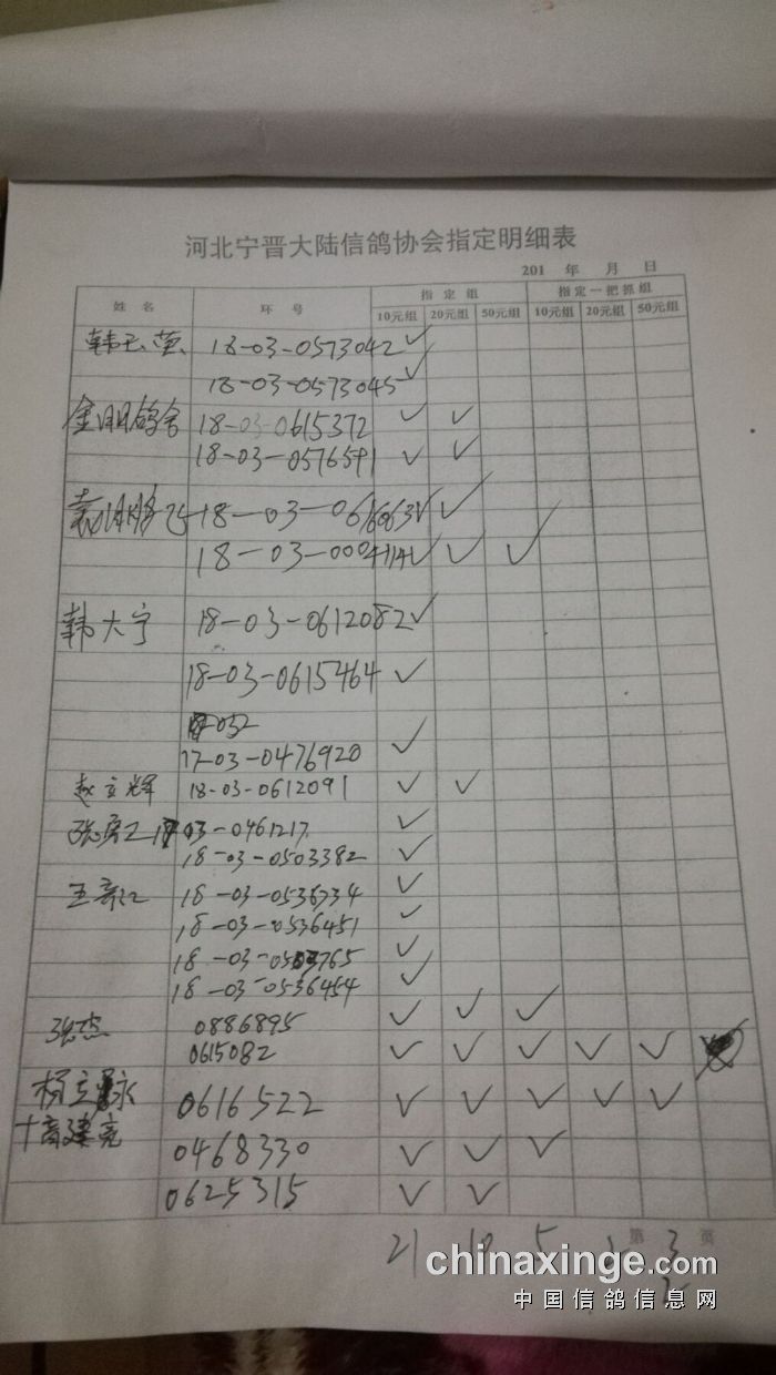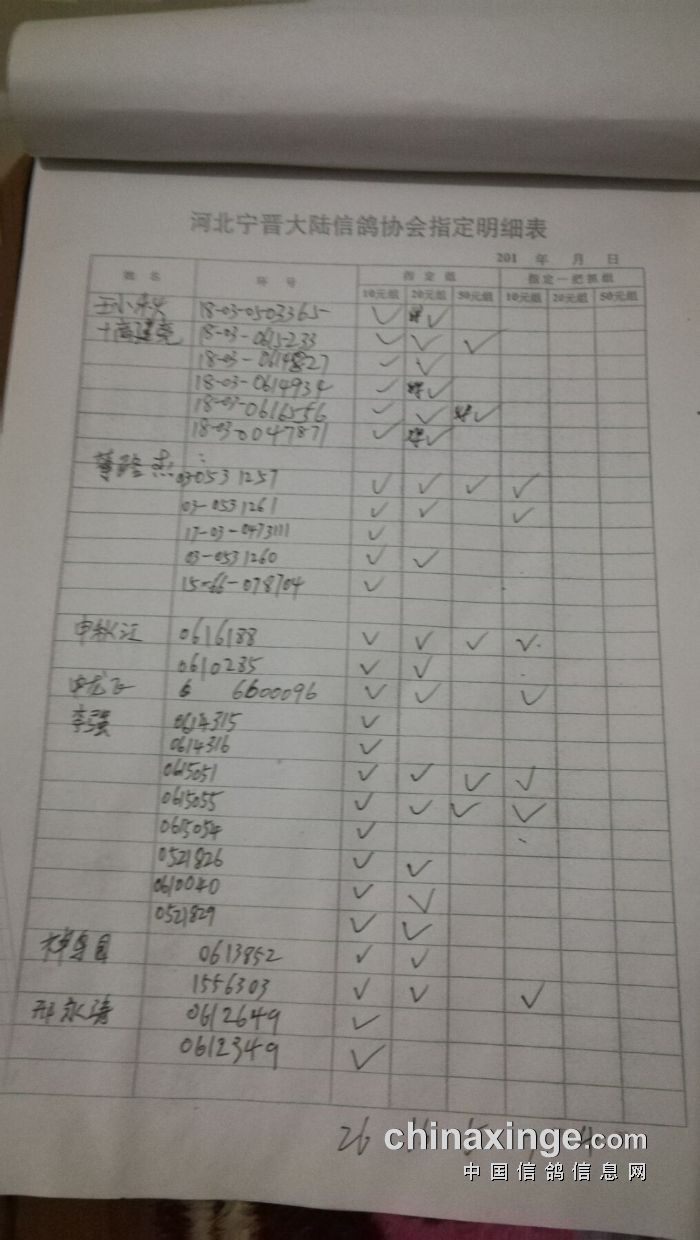 宁晋县大陆信鸽协会2019年春季180公里指定清单