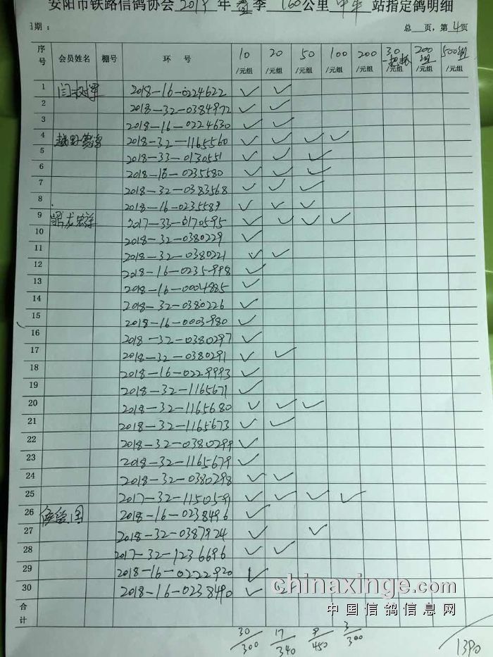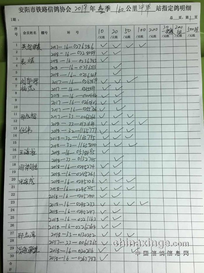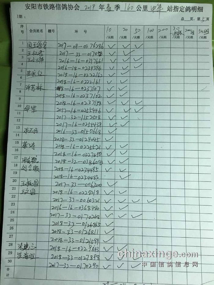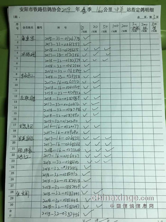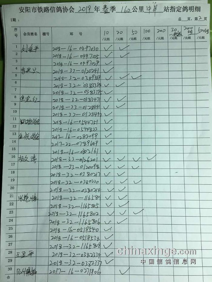 2019年春第二次160公里中牟站速度赛指定明细(1)