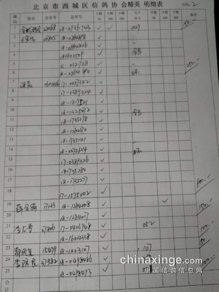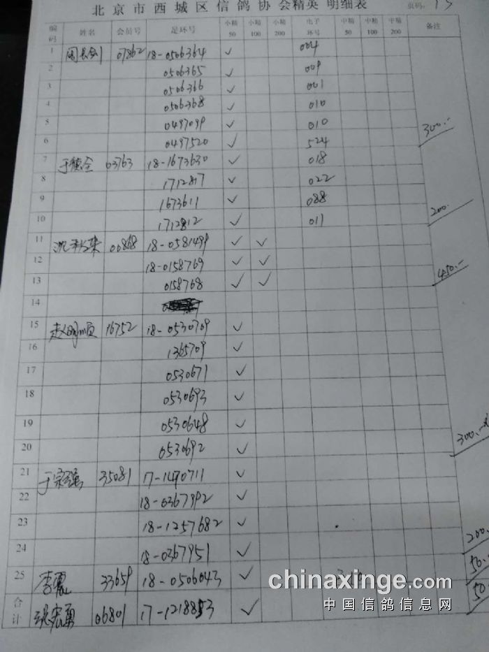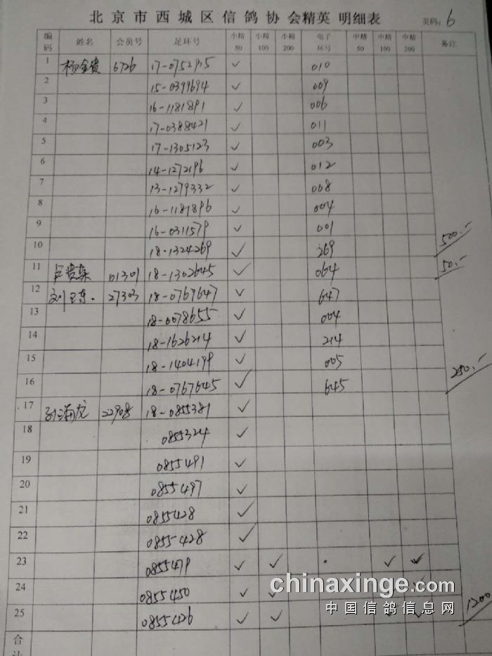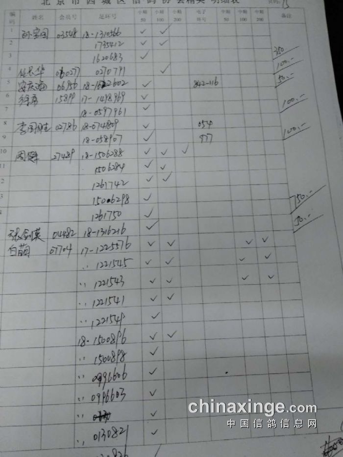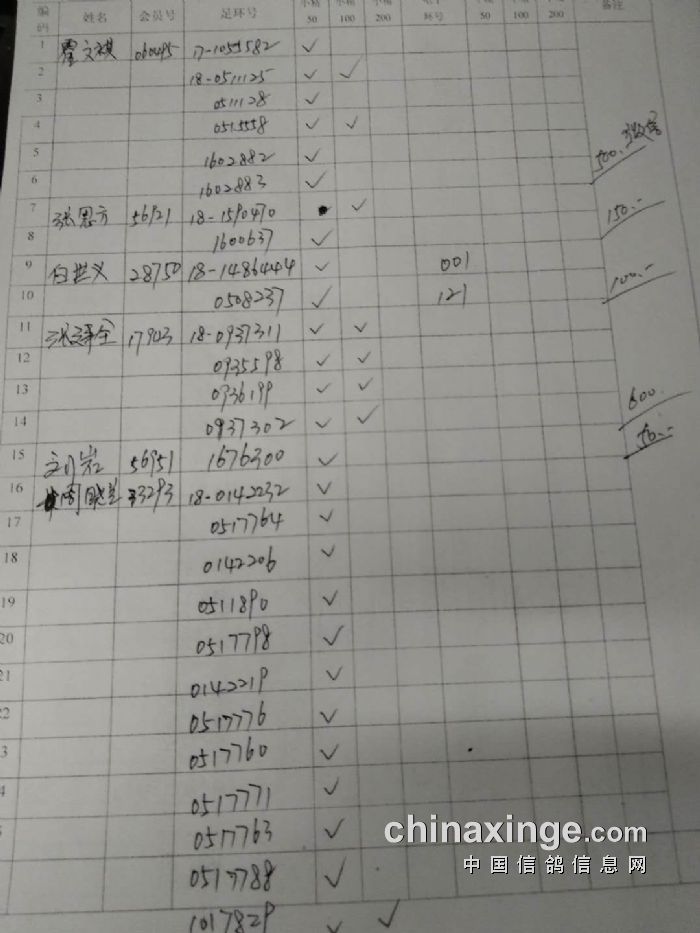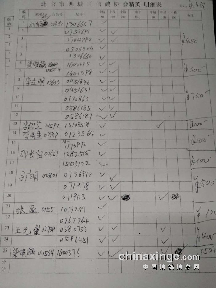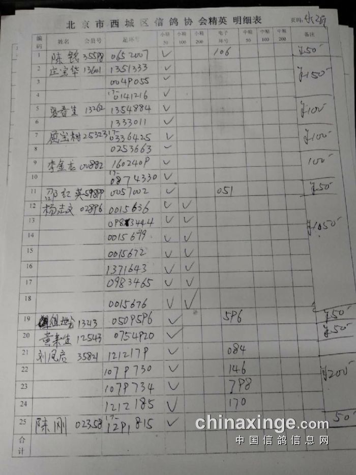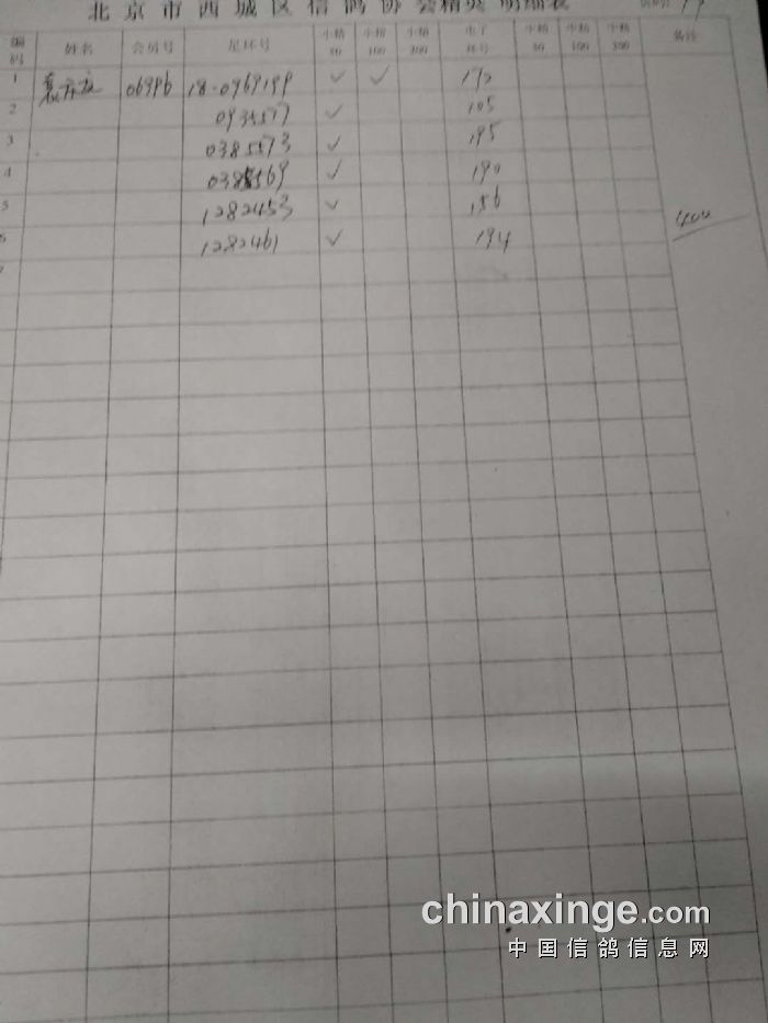 西城鸽会500特比第二关北区临时成绩