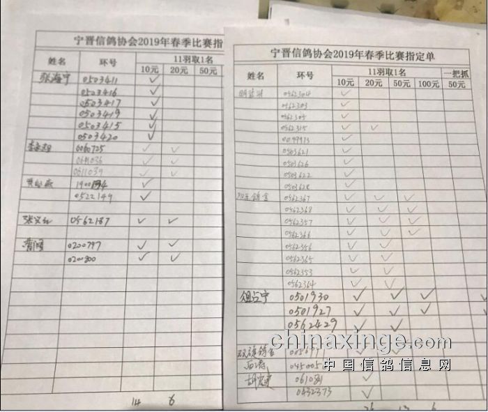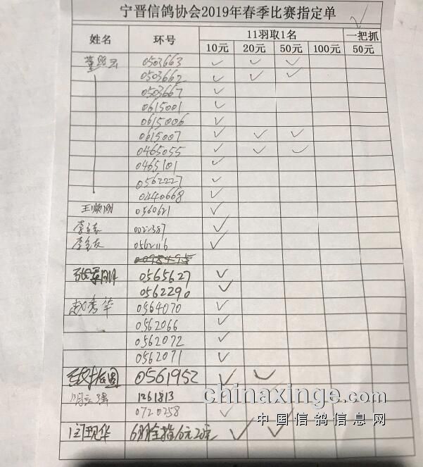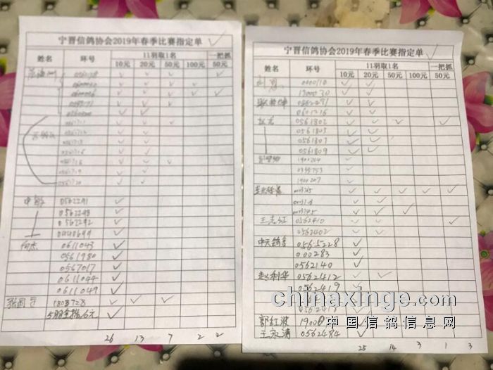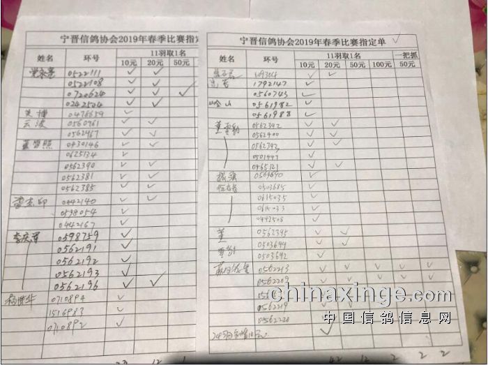 宁晋县信鸽协会第一关指定奖金分配及指定明细