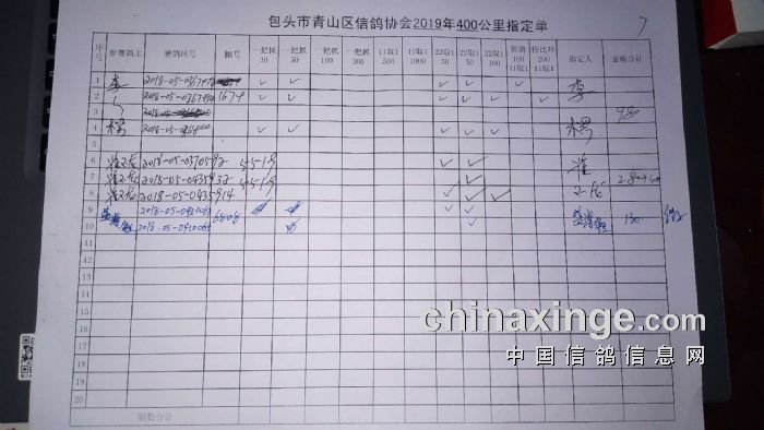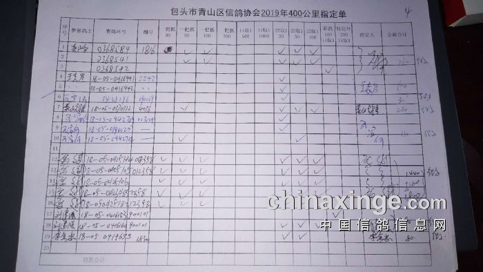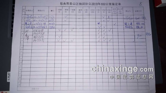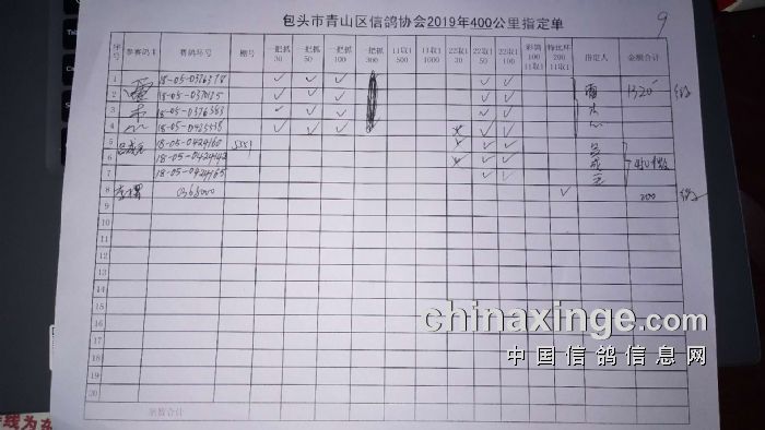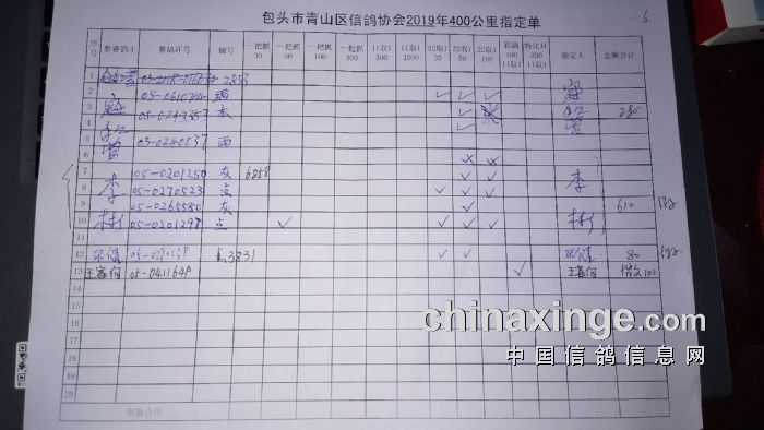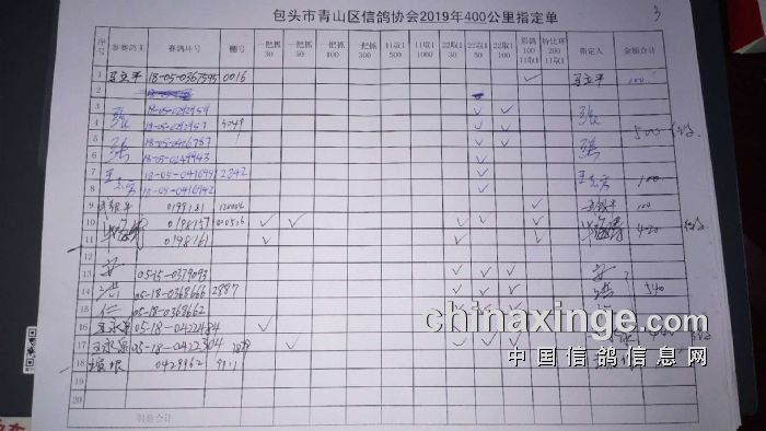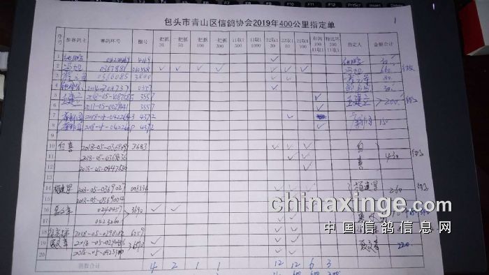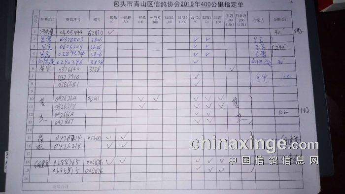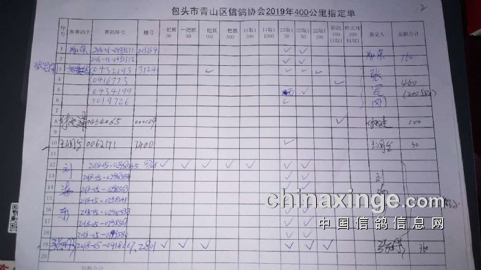 包头市青山区信鸽协会2021年秋季500元组特比环售环明细(2021年3月25日更新中.....)