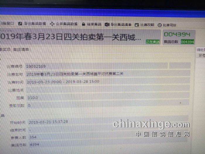 西城鸽会本场比赛共集鸽4394羽