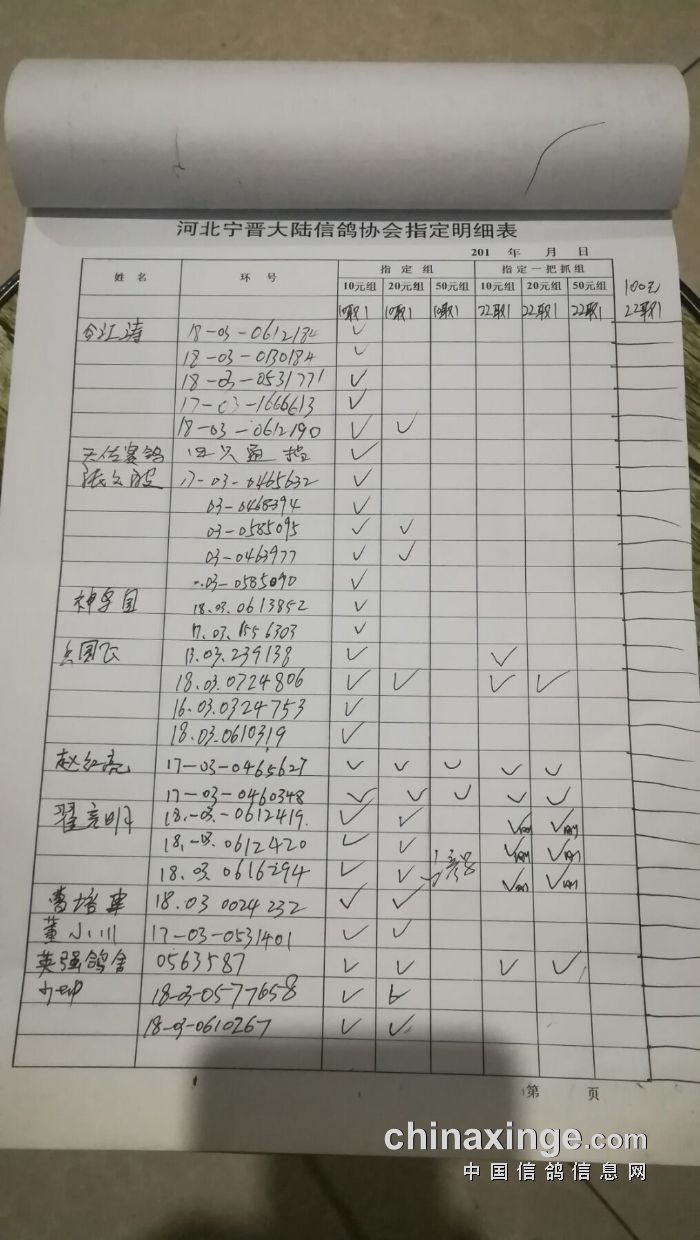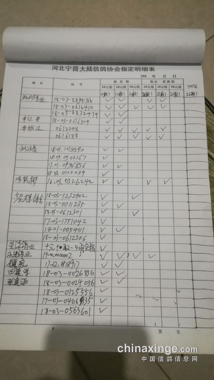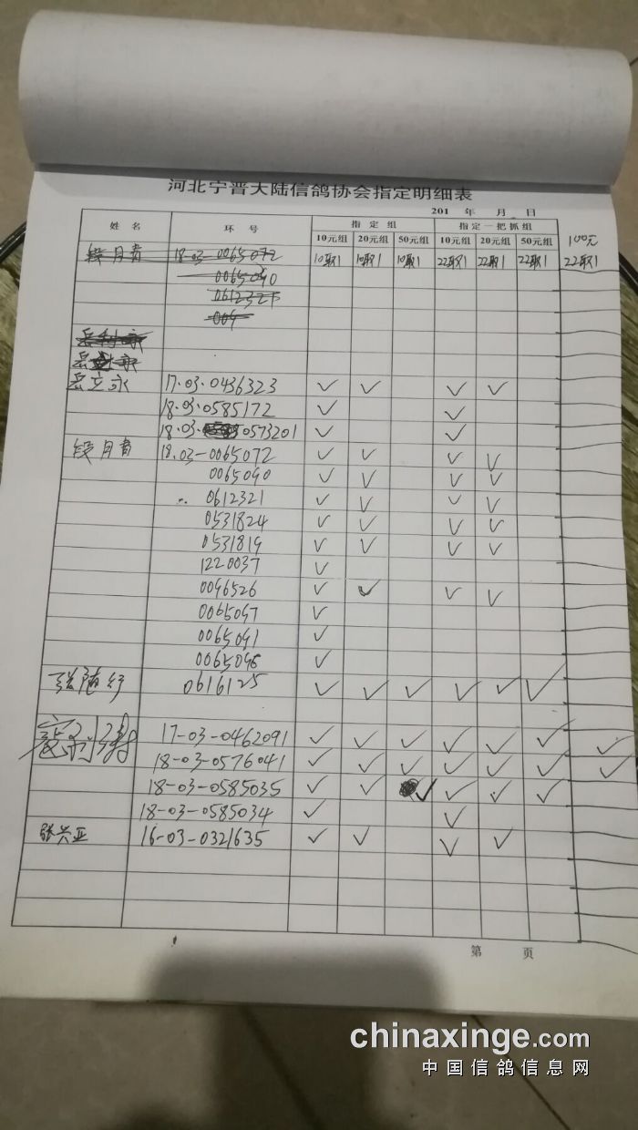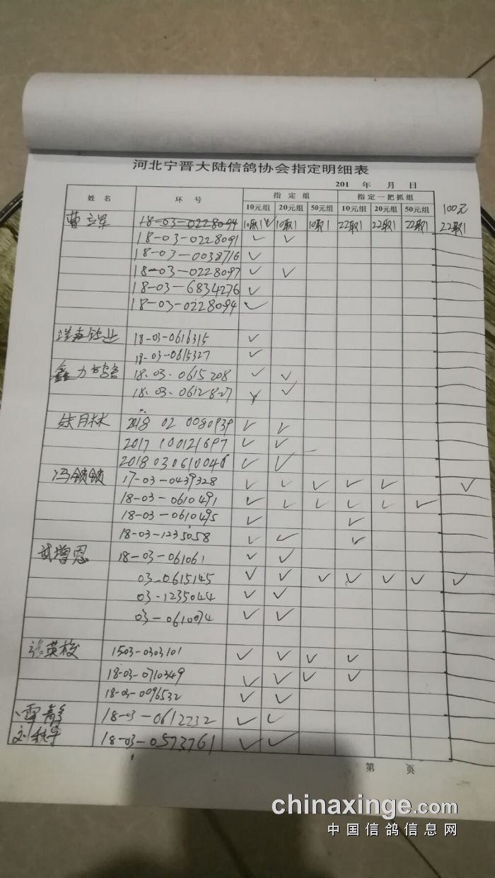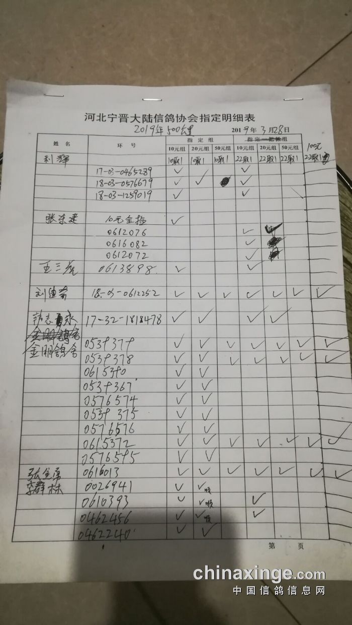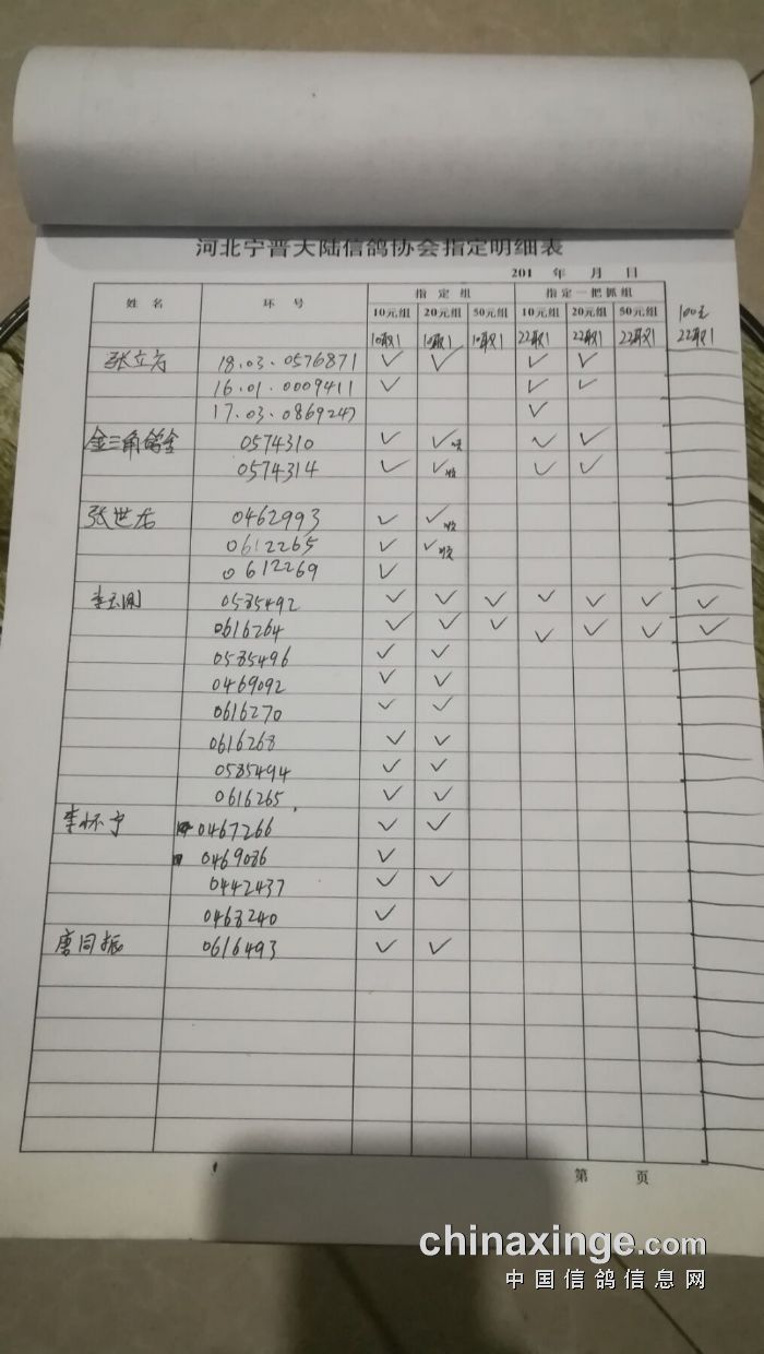 宁晋县大陆信鸽协会2019年春季500公里指定清单