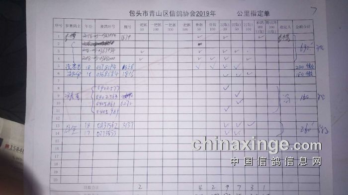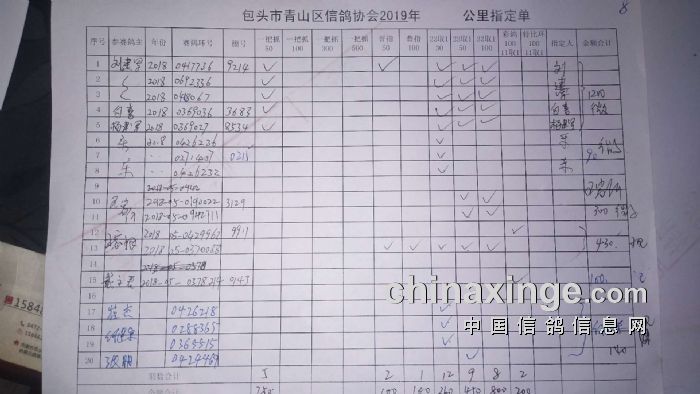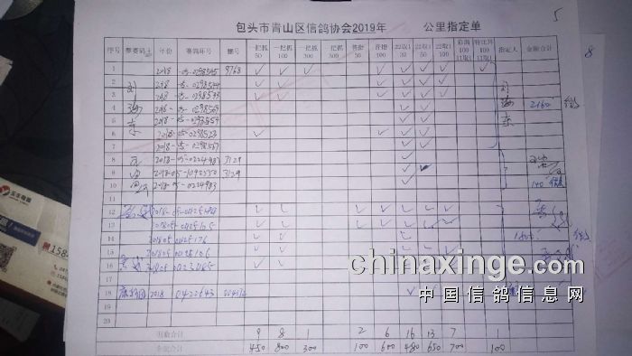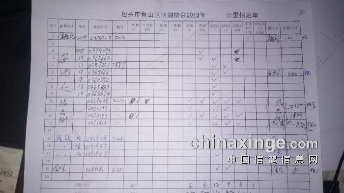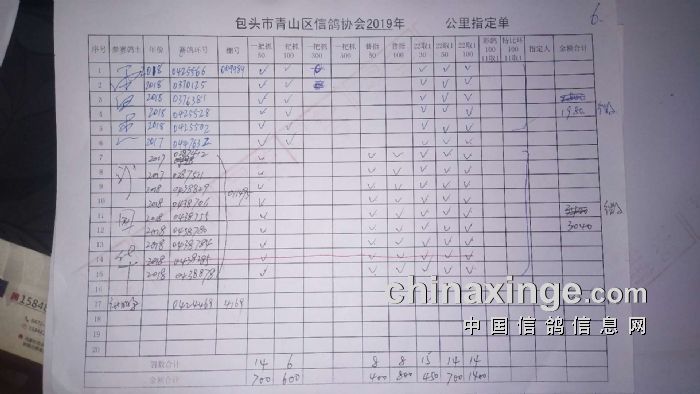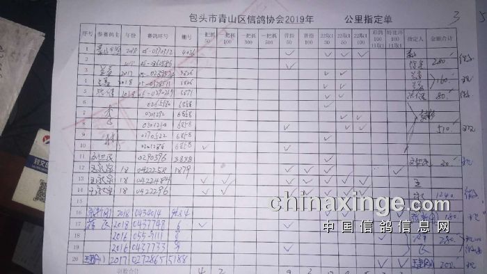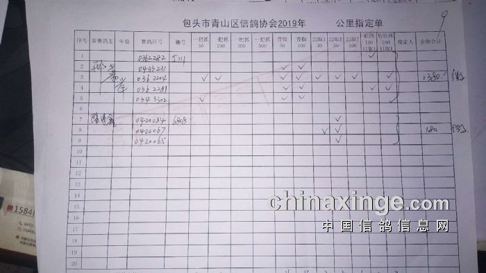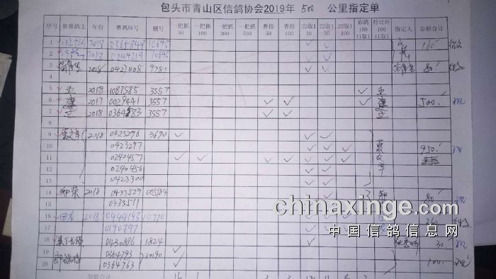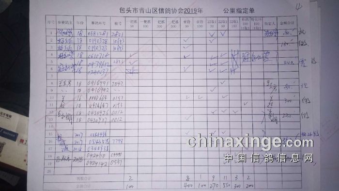 包头市青山区信鸽协会2021年秋季500元组特比环售环明细(2021年3月25日更新中.....)