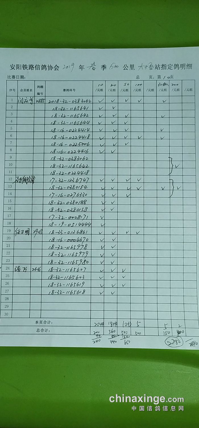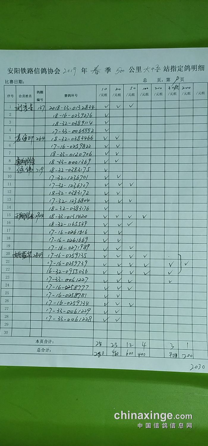 2019年春500公里第二关信阳站指定明细(2)