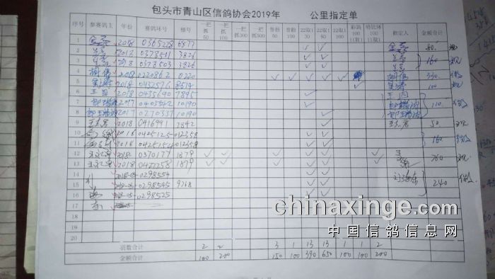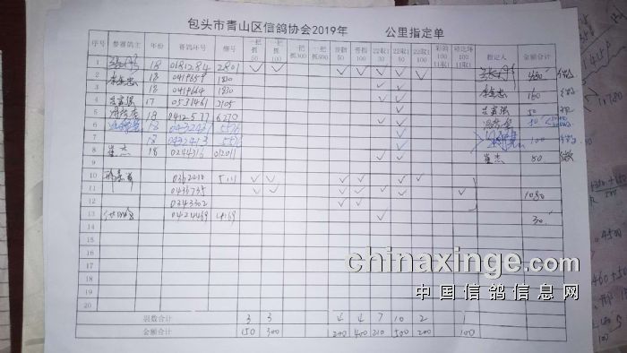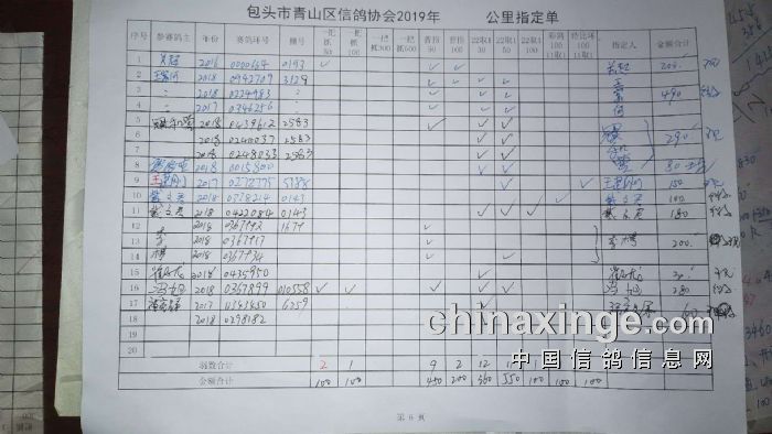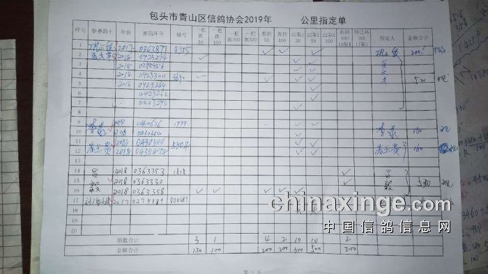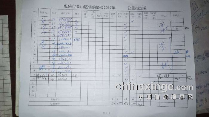 包头市青山区信鸽协会2021年秋季500元组特比环售环明细(2021年3月25日更新中.....)