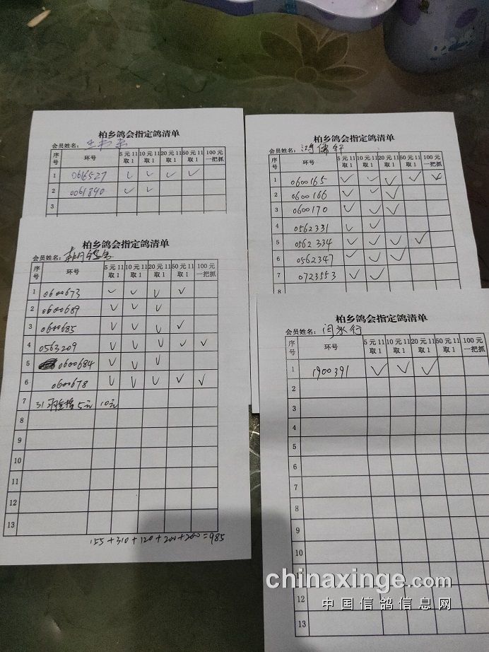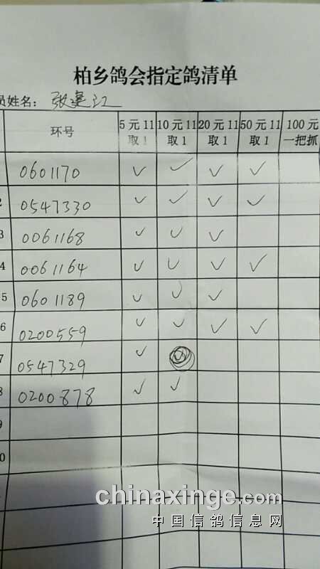 柏乡鸽会600公里指定鸽清单及奖金分配