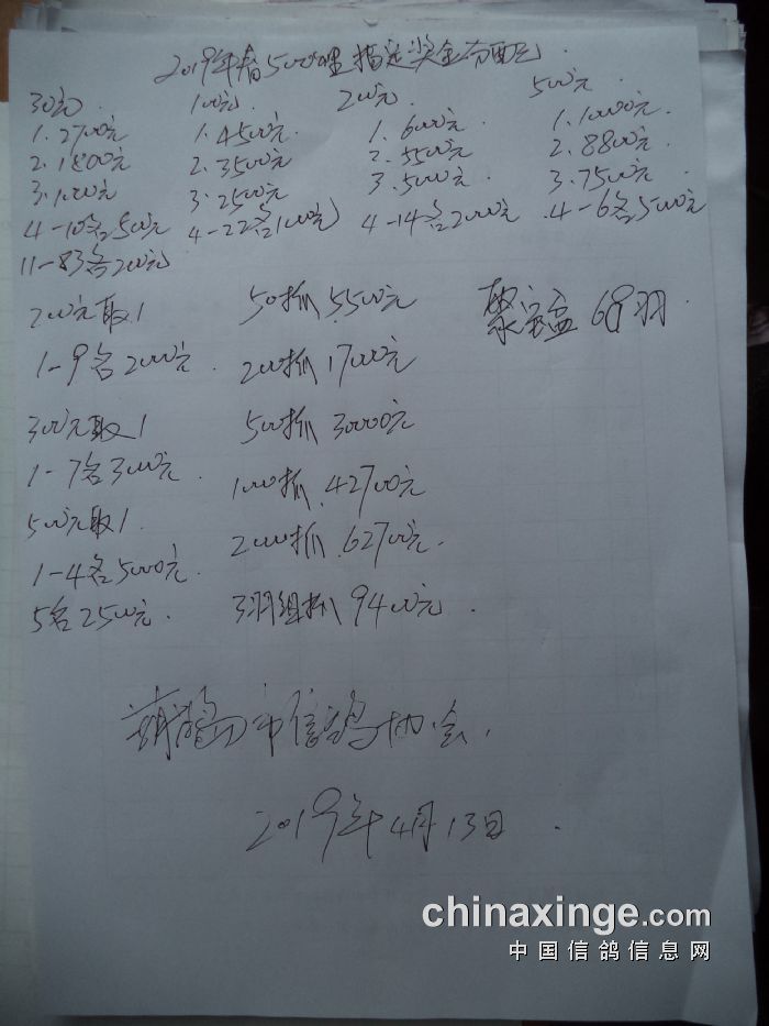 2024春季500公里(3)竞翔赛奖金