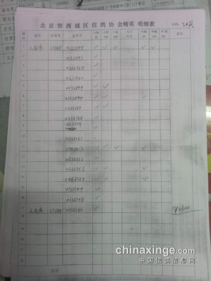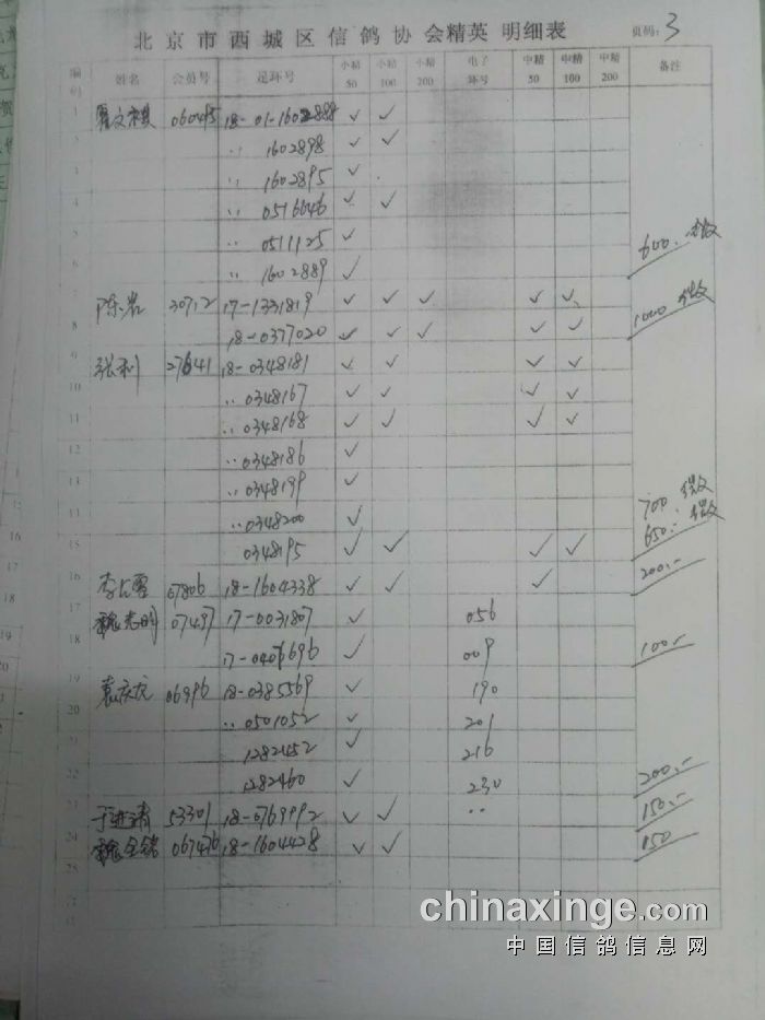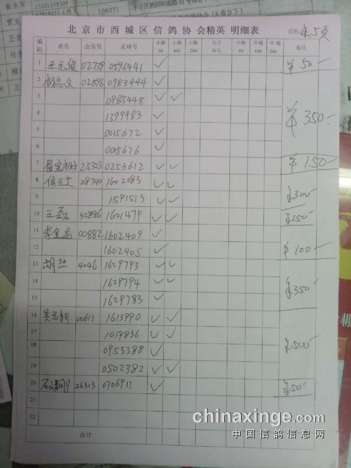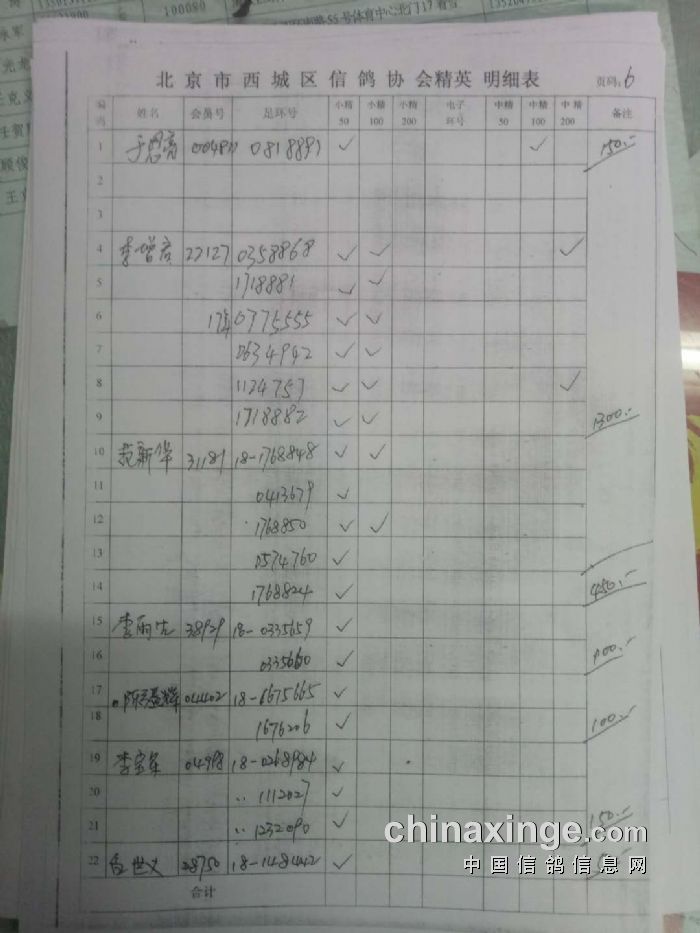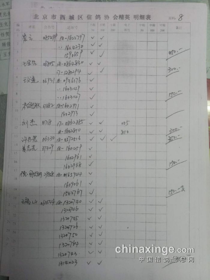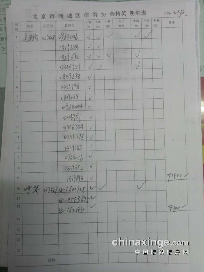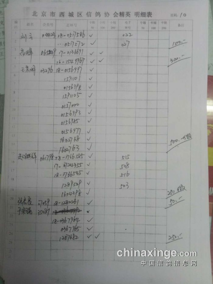 西城第八届“跨双年度最佳鸽舍、最佳鸽手”秋季积分光荣榜排名