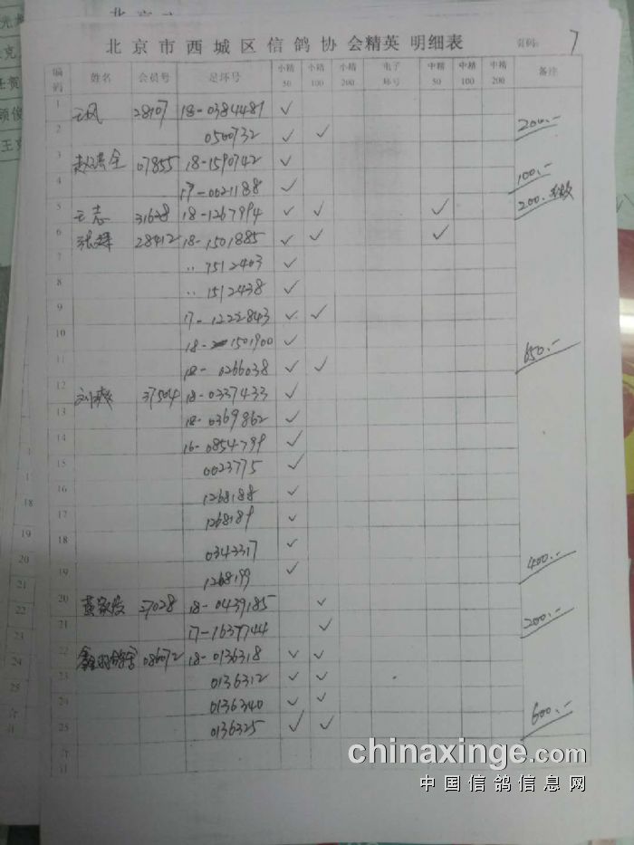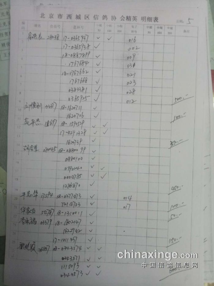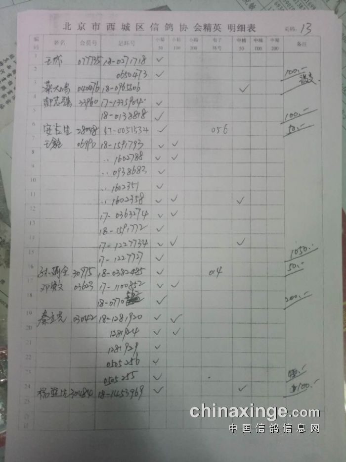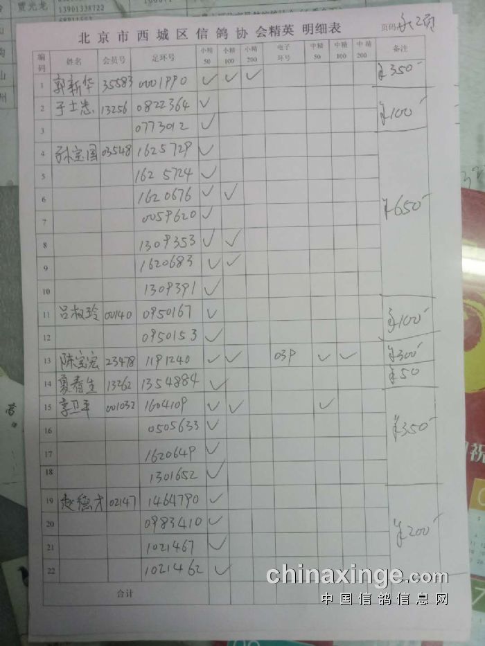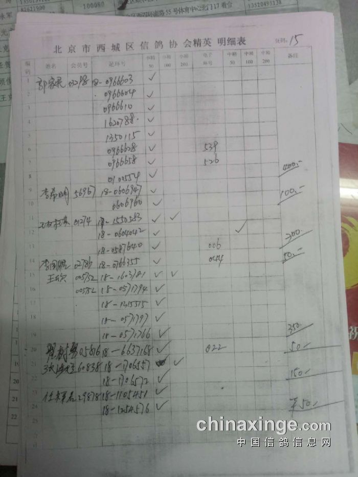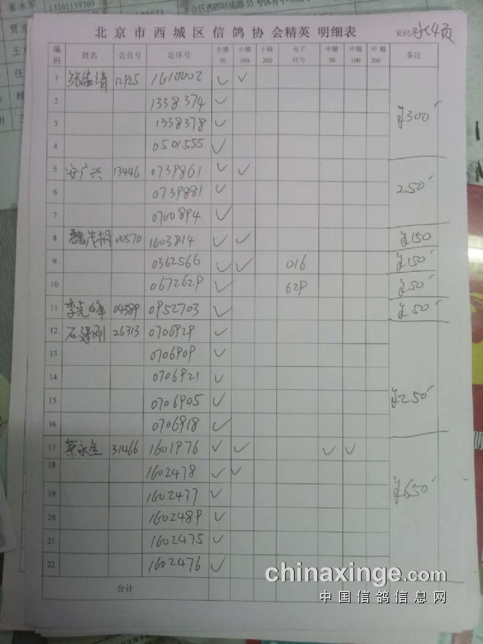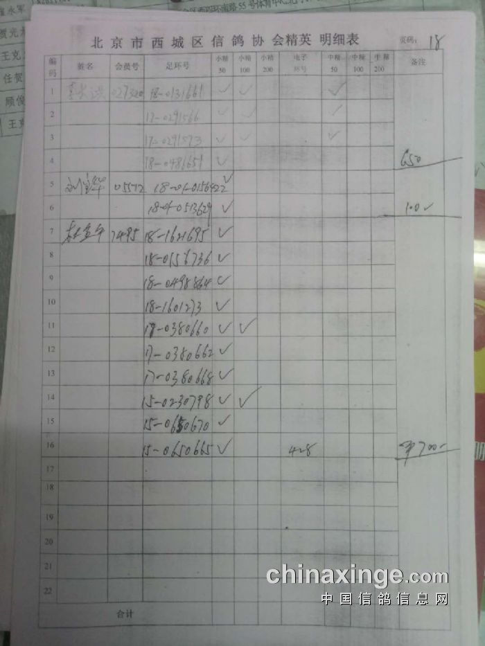 西城第八届“跨双年度最佳鸽舍、最佳鸽手”秋季积分光荣榜排名