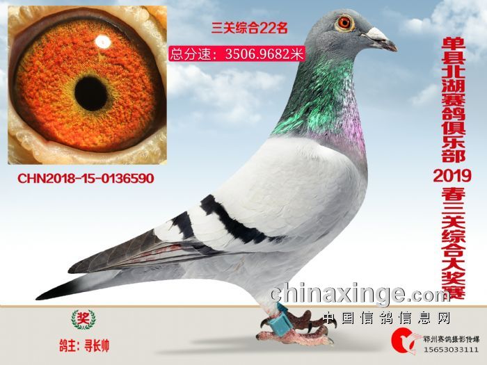 单县信鸽协会2019年春锦标赛三关鸽王排名: