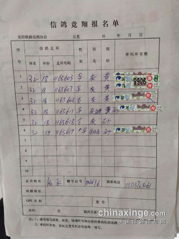 2019年春季安阳铁路鸽会第一届“大众杯”幼鸽大奖赛验鸽图片(亚军)