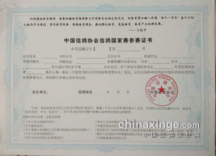18年参加国家赛的证书将在4月30号发放,本证书对鸽友的鸽棚以及利益有很大的保护。图3是19年国家赛时间,请参加国家赛的鸽友提前做好准备。