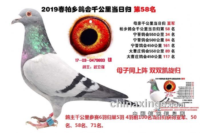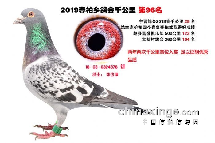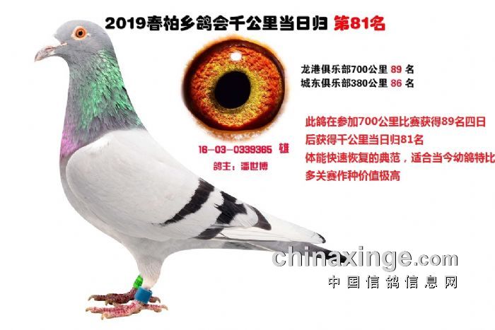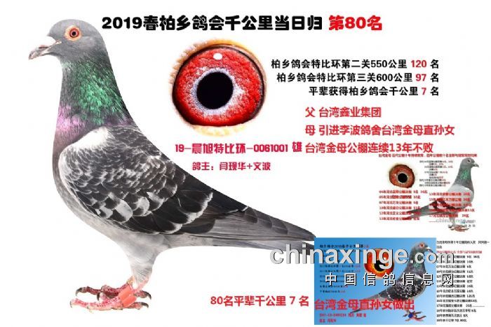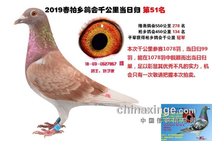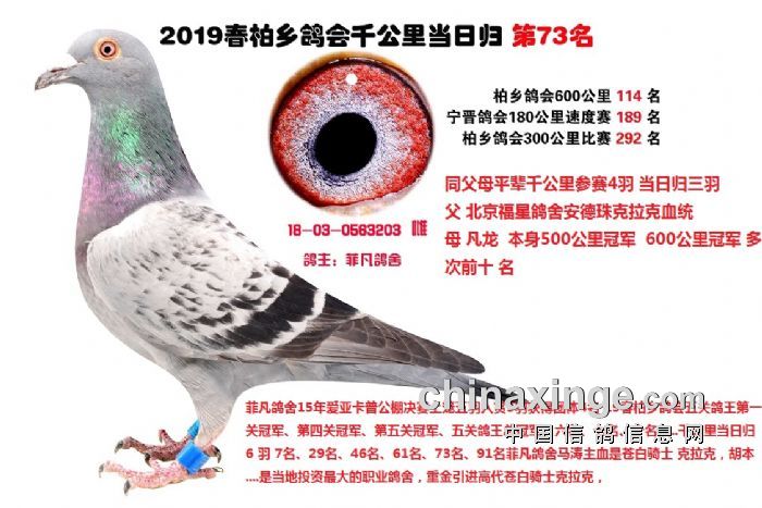 柏乡鸽会千公里能够得到全国鸽友的认可最大的因素是这些千公里优胜鸽通过网拍在全国安家落户后其后代很快展露头角为新主人挣得荣誉尤其是恶劣天气归巢率低 分速低 的情况下优势非常明显在 北京 云南 内蒙 贵州 山西 甘肃 ,江苏,…………作出的后代为新主人挣得荣誉赢取丰厚奖金,这些身经百战,成绩优异的实战赛绩鸽必将在你赛鸽夺冠路上给你带来意想不到的惊喜,赛鸽这项运动并不复杂,凡龙,和英格斯都说过一句同样的话,必须拥有最好的种鸽,好鸽自己就会赢,只要你有拥有极具速度的种鸽,你一样可以成为鸽界强豪傲视鸽坛名利双收。