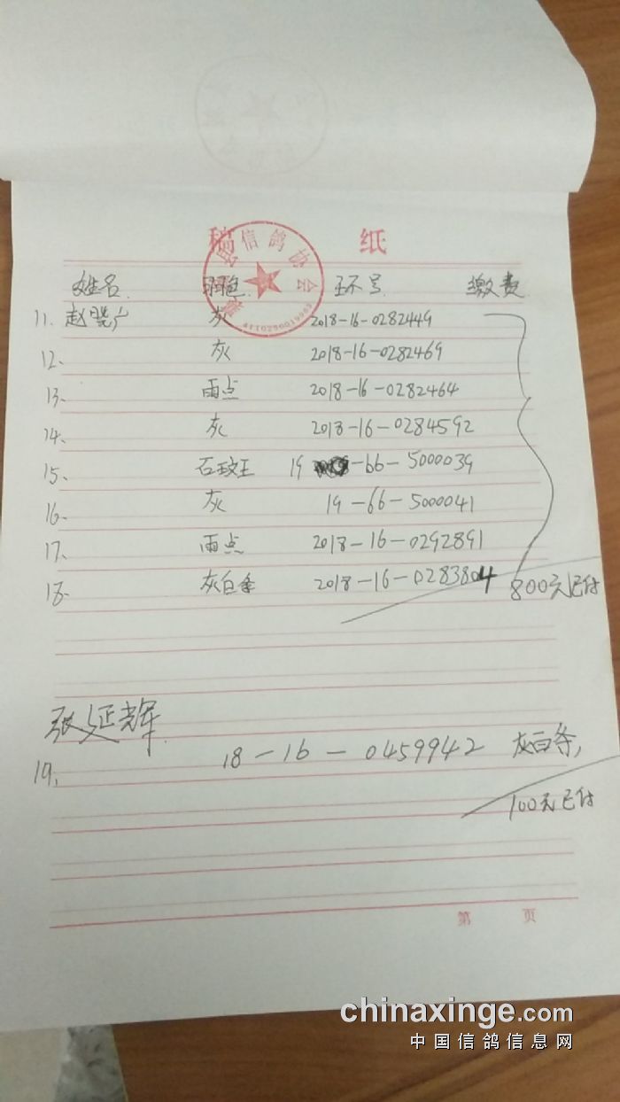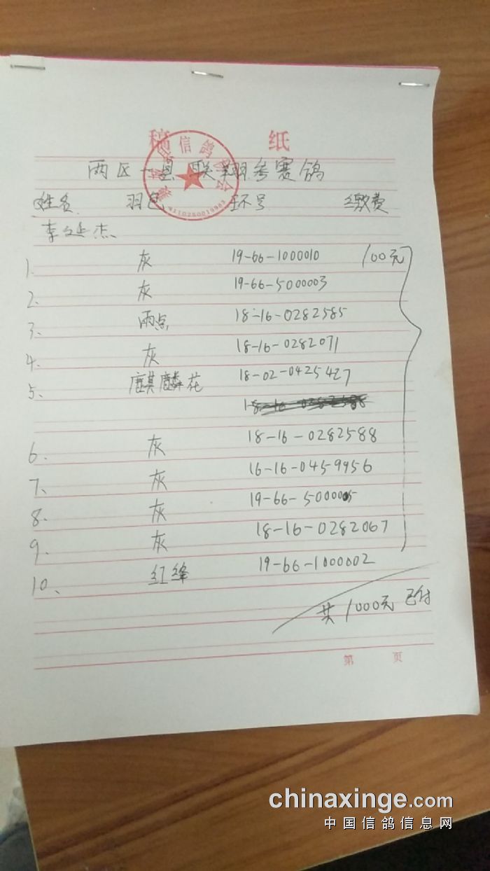 襄城县信鸽协会2019年春联翔底单