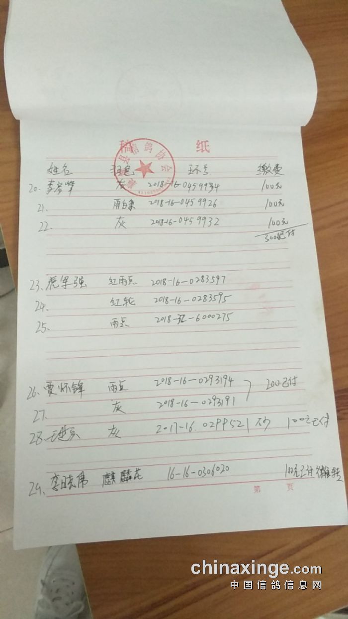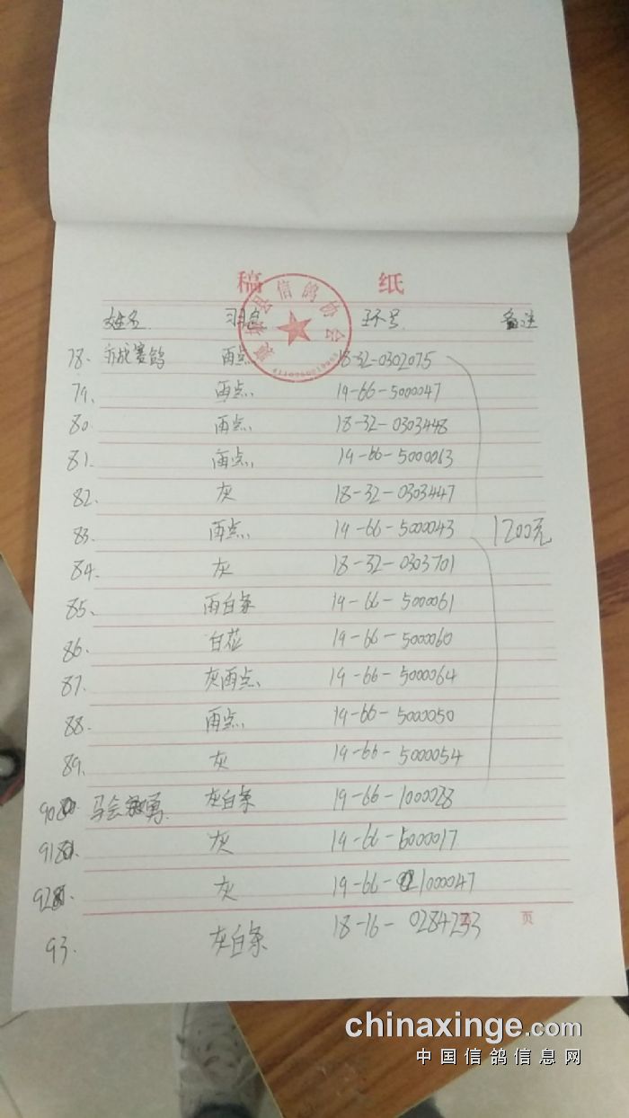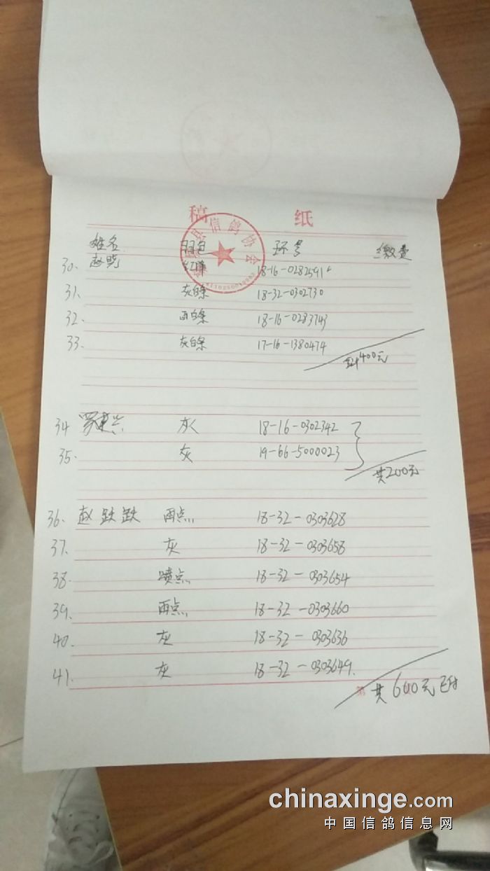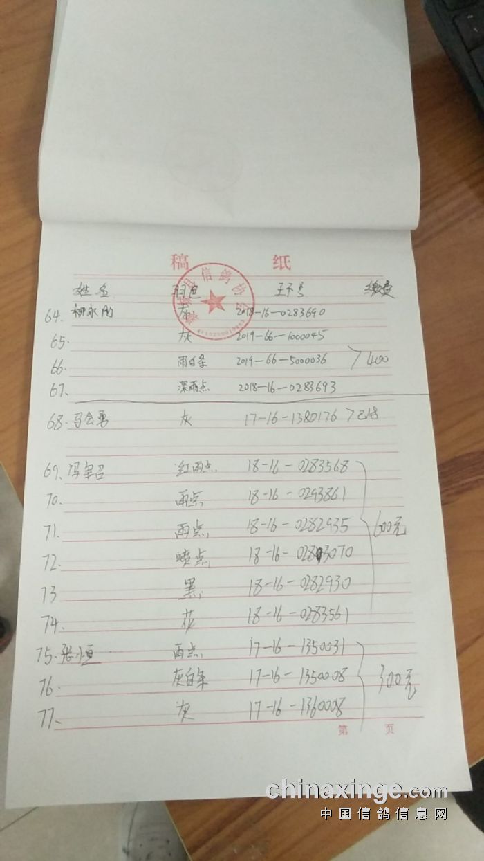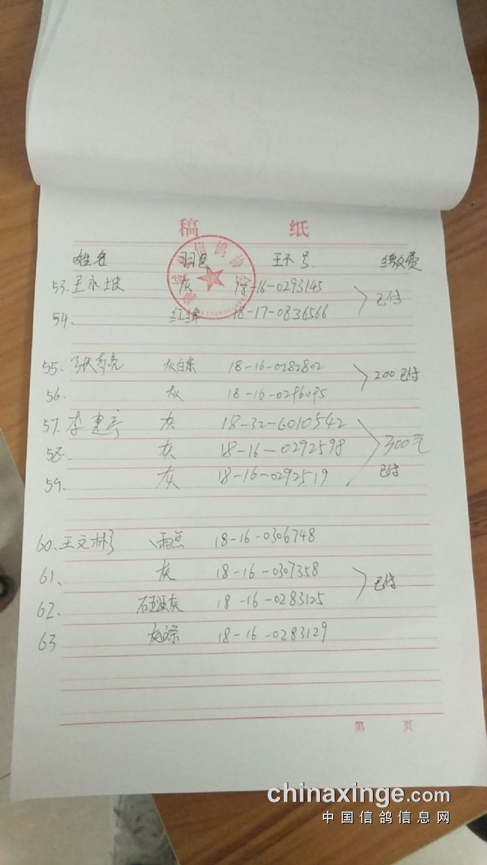 襄城信鸽协会25年秋季第三关510公里湖南南县比赛集鸽清单