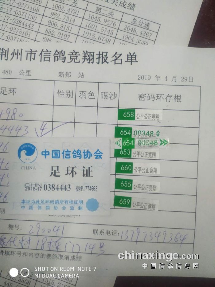 2017年11月26日480公里新郑站年度王中王比赛集鸽清单