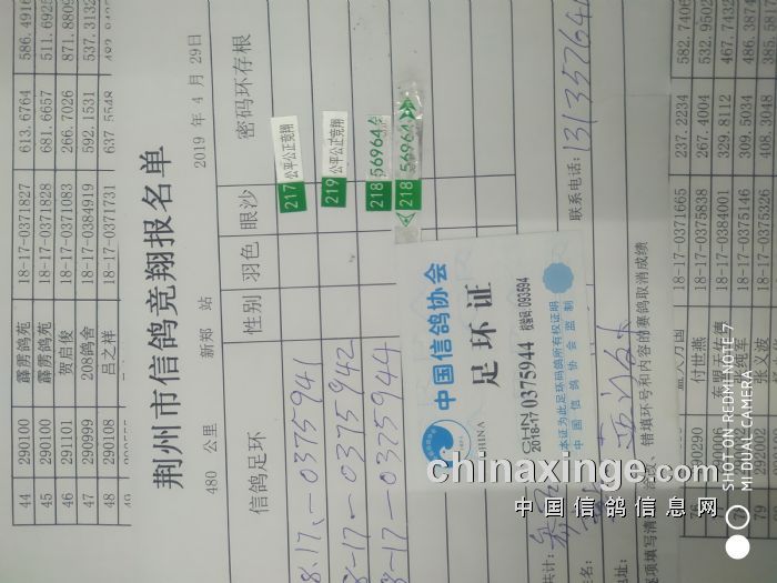 2017年11月26日480公里新郑站年度王中王比赛集鸽清单